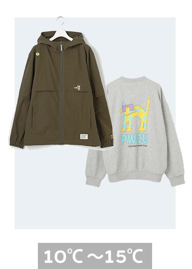 暑くなったり、急に冷え込んだりする春先の気候の変化には、【撥水素材】のアウターをプラスするのがおススメです。春の雨対策にもなります。10℃~15℃前後の気温の日は、体があたたまるまでスウェットやプルオーバーの重ね着をしたうえで、アウターをしっかり着用し、暖かくコースをまわりましょう。
