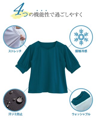 シンプルだけど、ほんのり甘い大人顔Tシャツ。毎日の着こなしをランクアップできちゃう、名わき役として役立つ一枚。明るい色でも汗をきにせずお仕事シーンにも大活躍。
