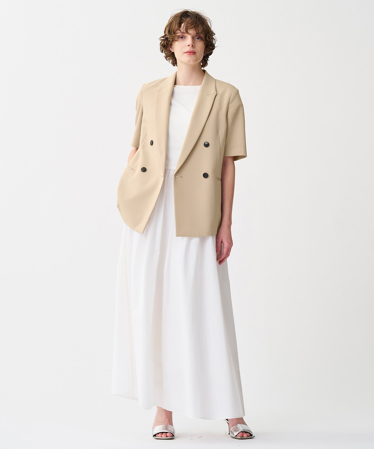 雑誌で見かけて、欲しくなりました。いつも通勤はジャケットを着用しています。以前は七分袖が多かったのですが、最近は長袖の袖口を折り曲げたりしています。半袖は少し抵抗がありましたが、違和感なく大丈夫でした。ベージュ色を購入したので幅広く活用できそうです。セットアップになるパンツも合わせたいなと思っています。年齢に関係なく使えました。