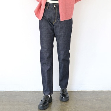 ほんのり裾に向かって細くなるシルエットで、足さばきも軽快に。ジーンズ発祥の地アメリカ産コットンを採用したストレッチ赤耳デニム。ヴィンテージにふさわしい目の詰まった生地ですが、ナチュラルストレッチが効いていて穿き心地抜群です。