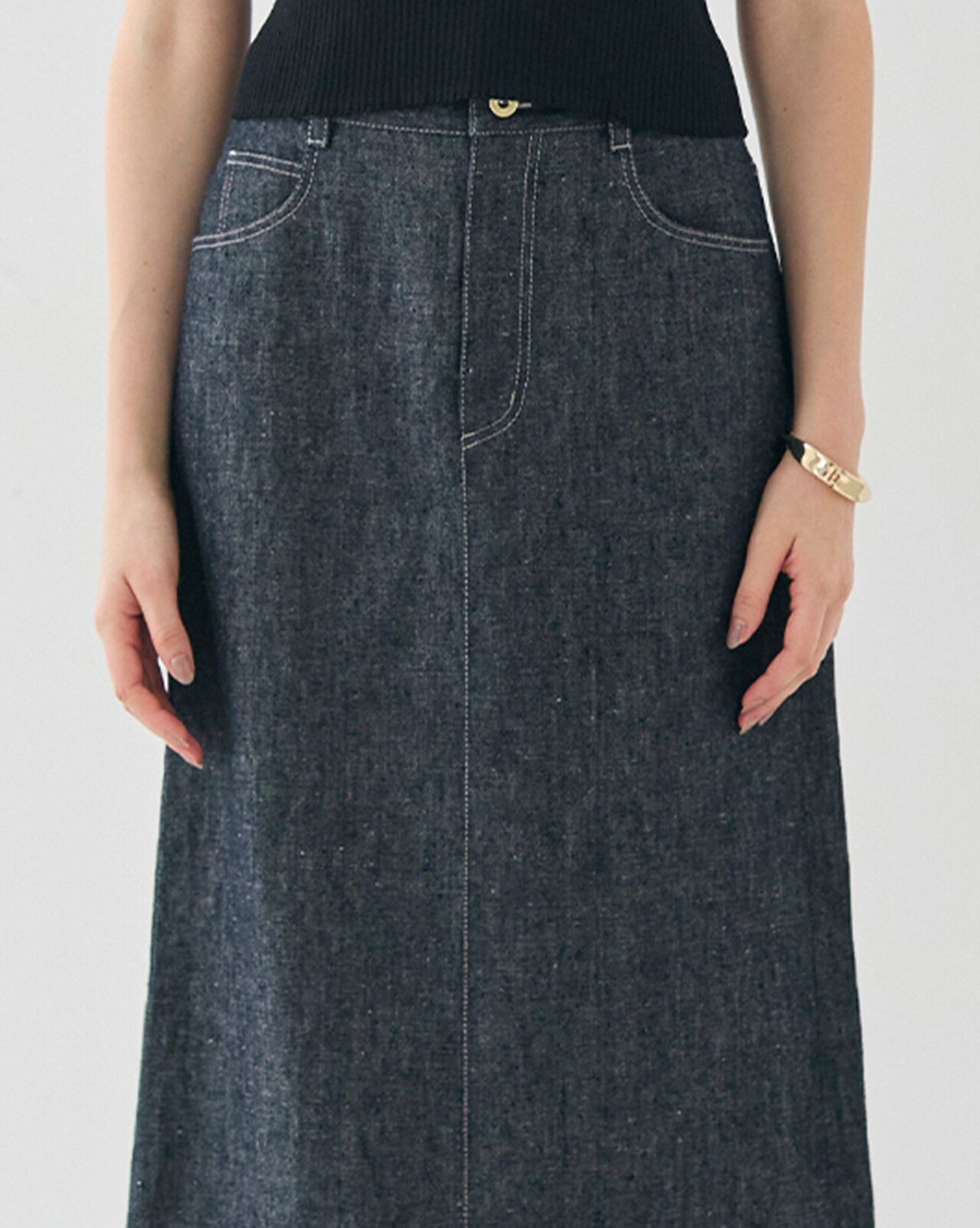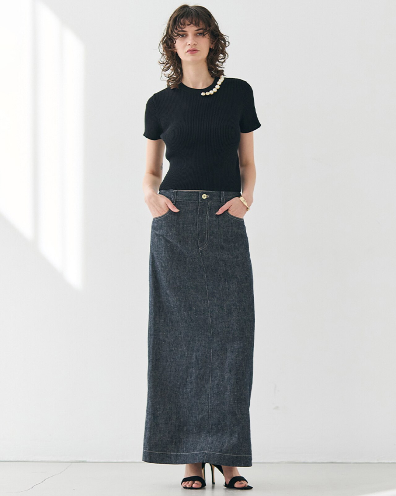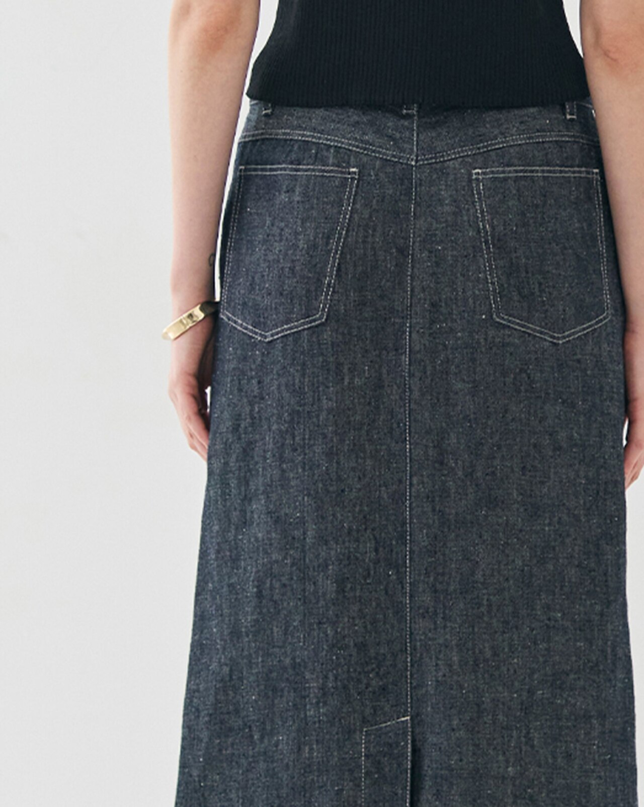 リネンとコットンの独特な表情が上品なシルエットを作るデニムライクシリーズをご紹介。