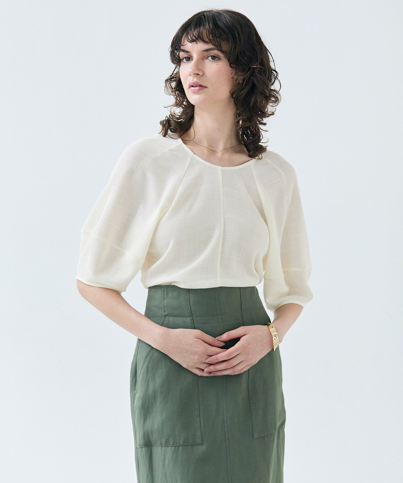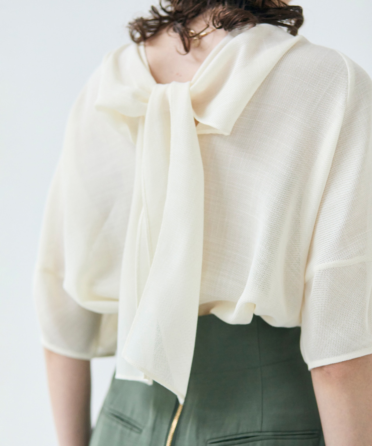 シンプルながら、バックスタイルや顔周りの揺れ感が美しい一枚で着映えるアイテム。
