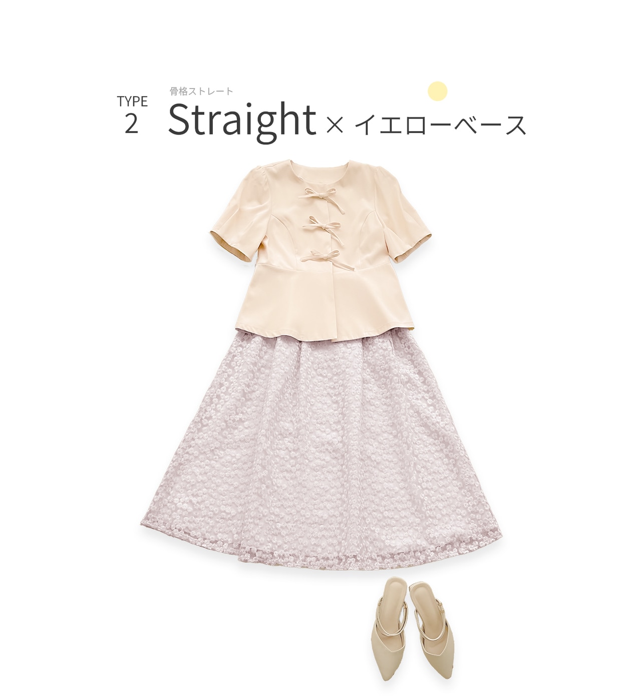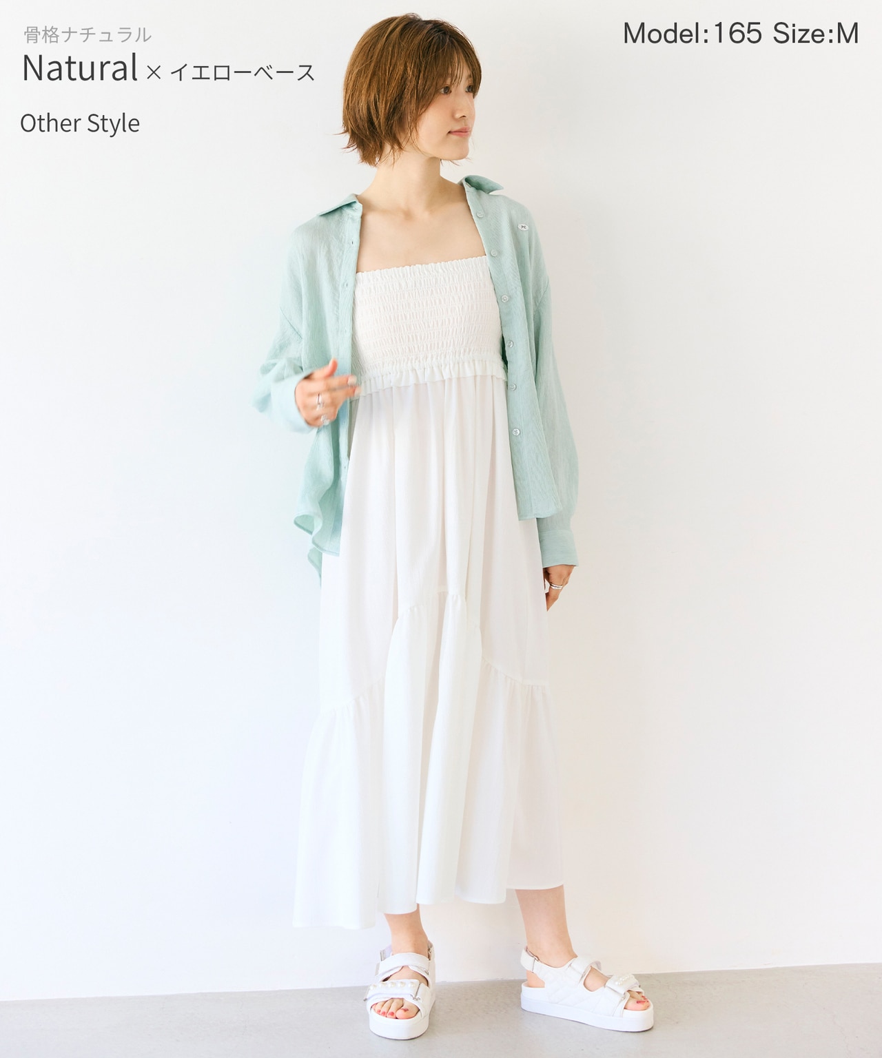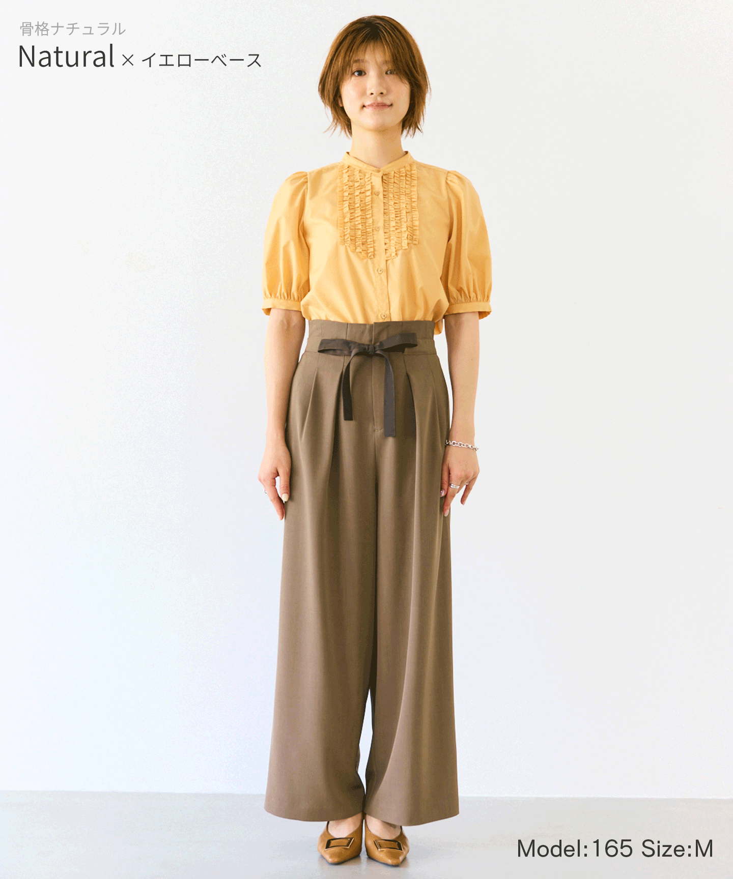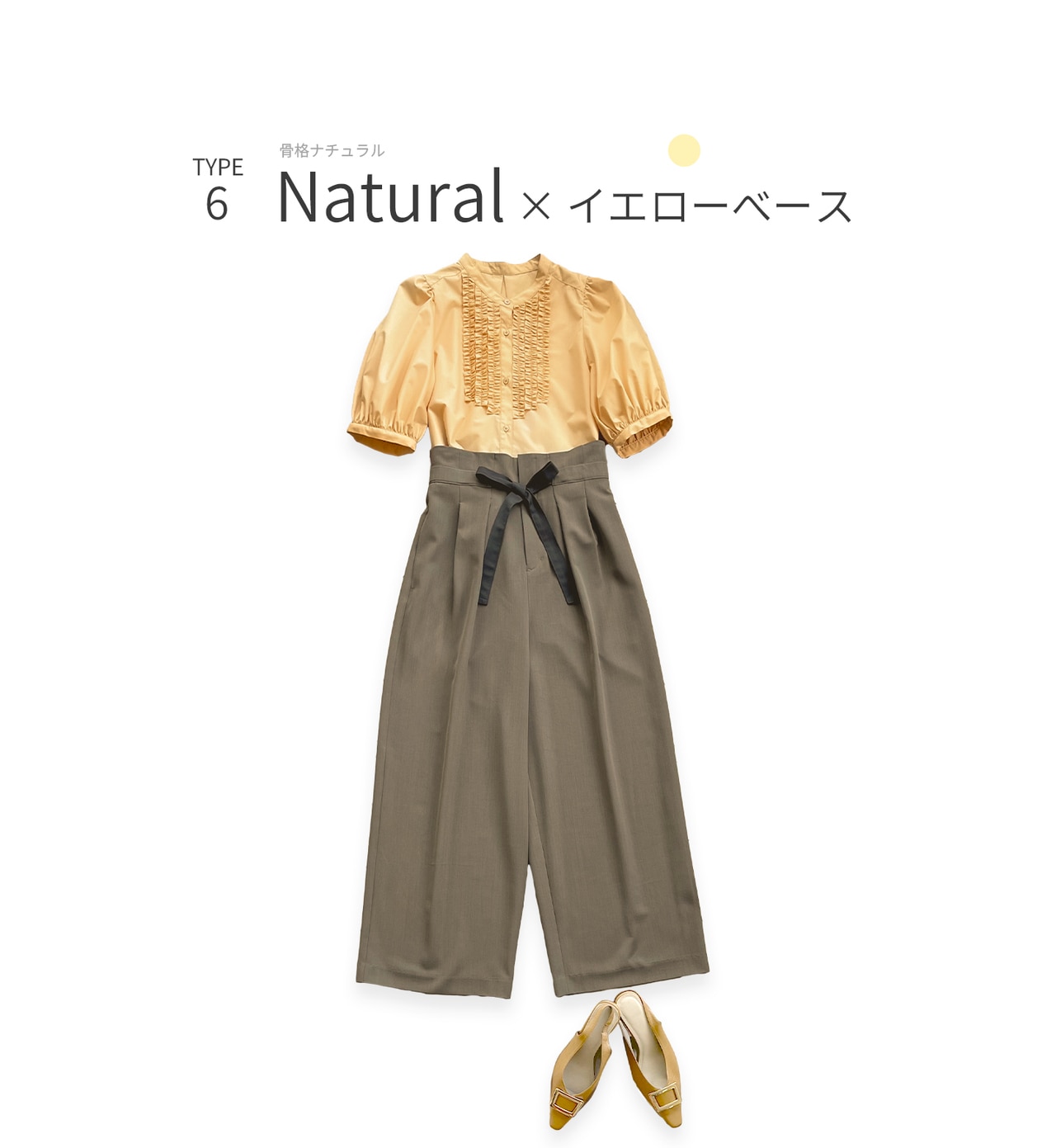 優しいオリーブと柔らかな白がイエベ肌に自然に溶け込むナチュラルなトーン。