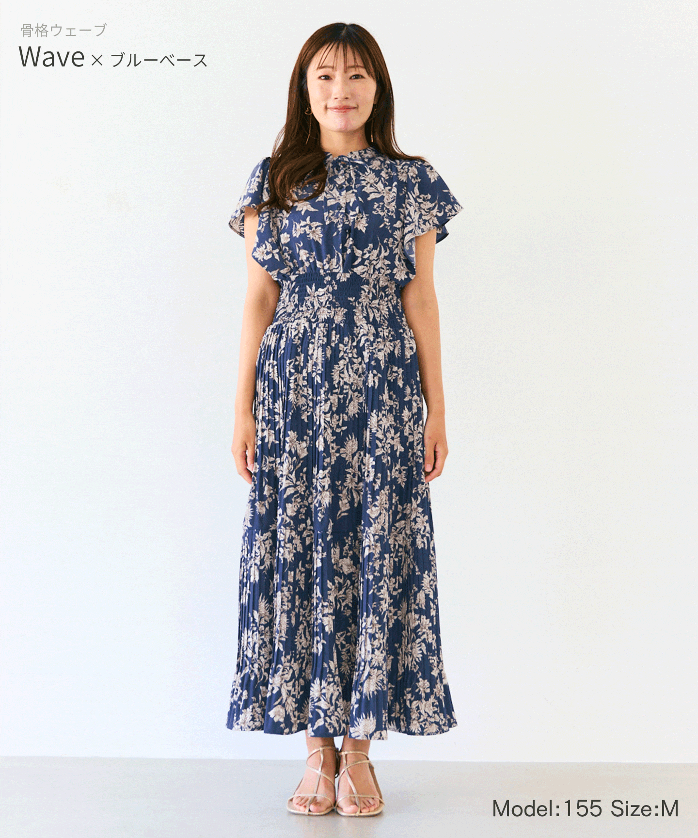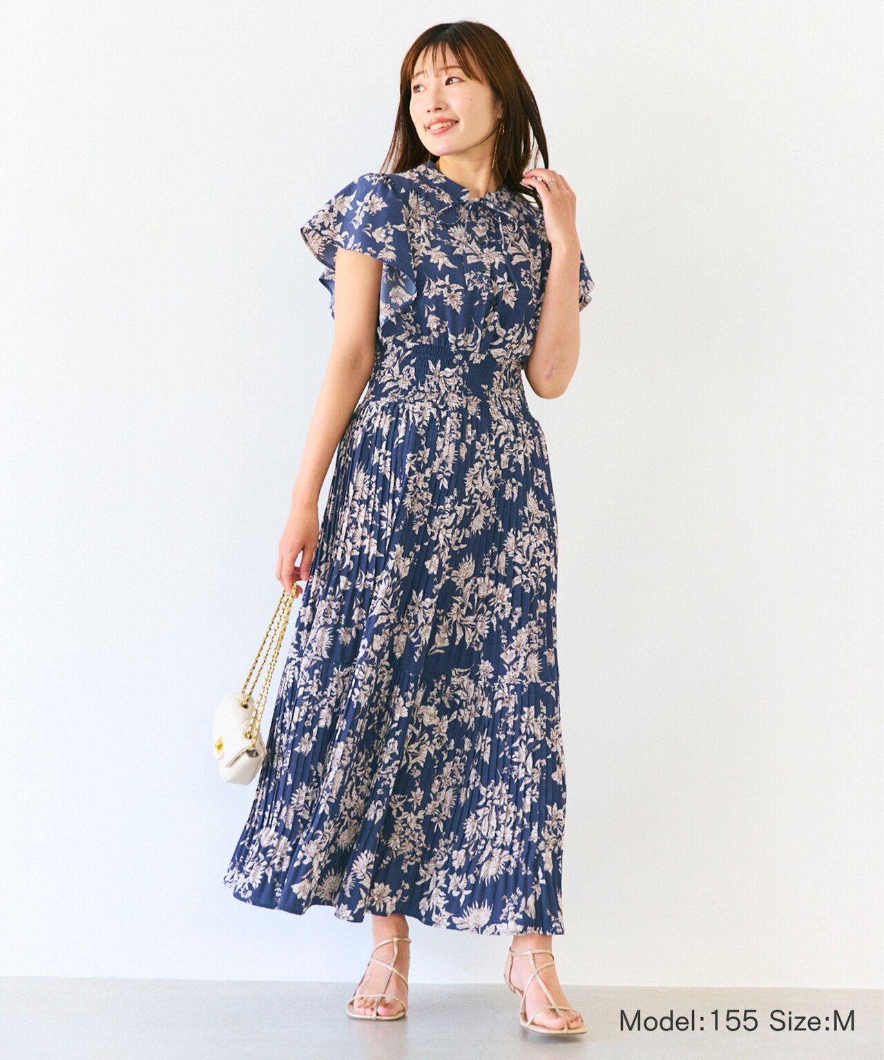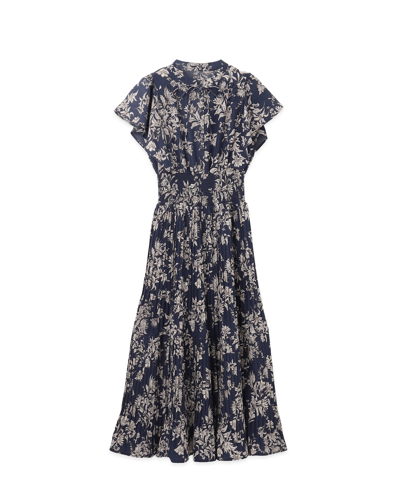 美肌見えの効果があるネイビーに大人なフラワープリントが上品!