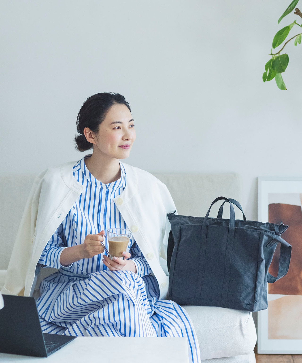 A4サイズのものがスッポリ入る大きさで、お仕事用にもちょっとしたお出かけにも大活躍するサイズ感。肩掛け、手持ち、ナナメ掛けの3wayで持てるところもポイントです!
