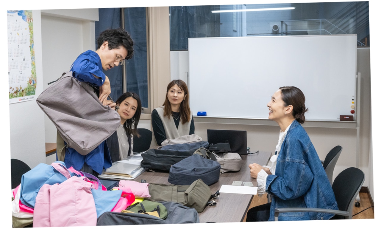 初回のお打ち合わせから、雰囲気は終始和気あいあい。はまじさんは〈NIZYU KANO〉のほぼすべてのバッグと対面し、ユーザーへの気遣いが表れている様々なディテールに感動していました。