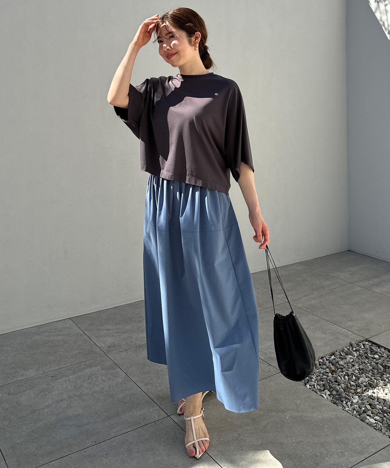 Tシャツ感覚で使えるのにTシャツよりキレイ見えするから、ONスタイルでもOFFスタイルでも活躍間違いなし!この夏一枚持っていればコーデに困りません。