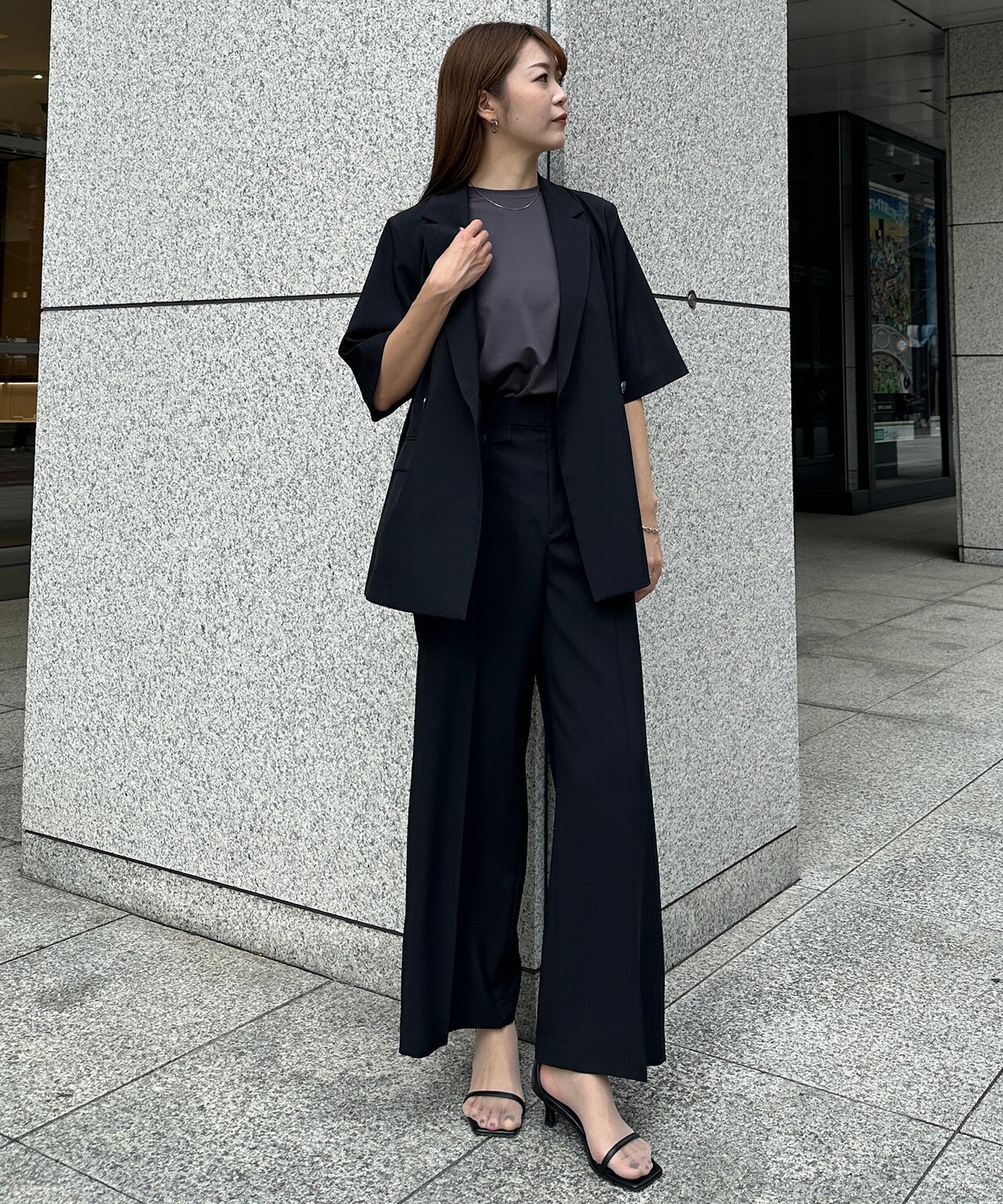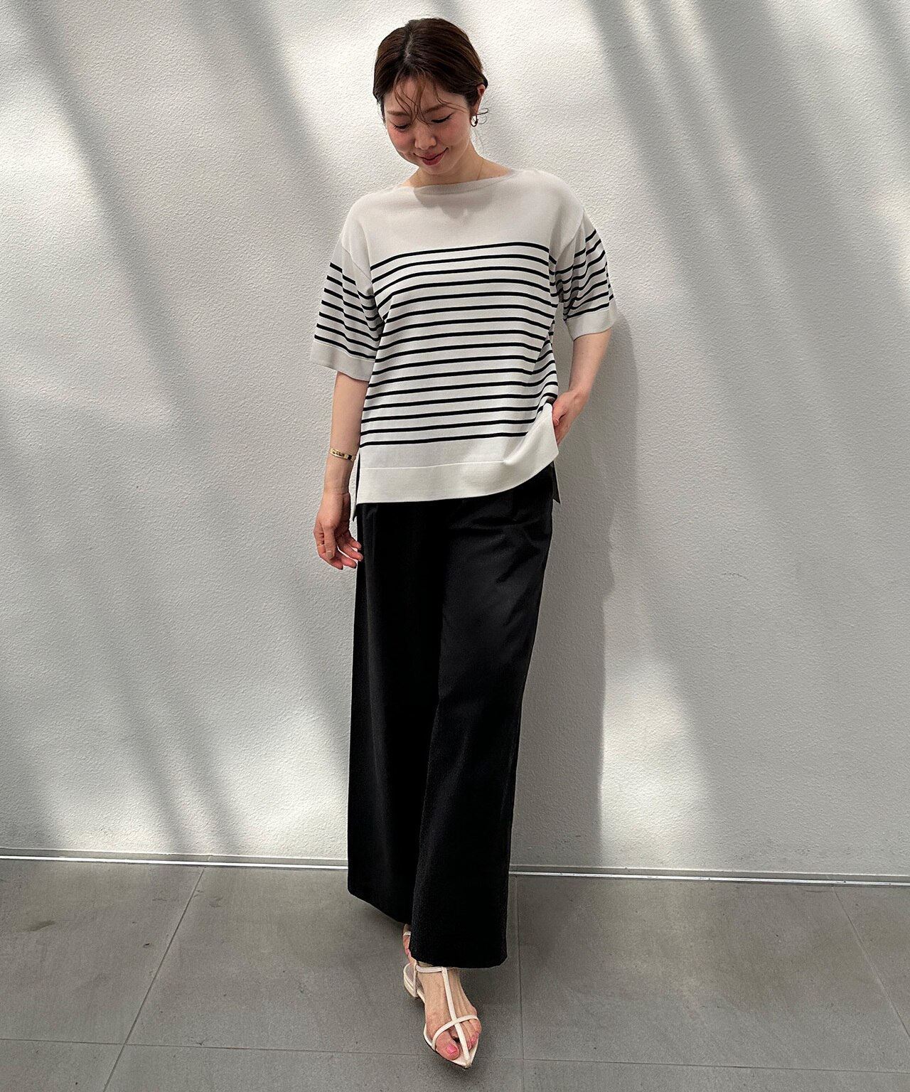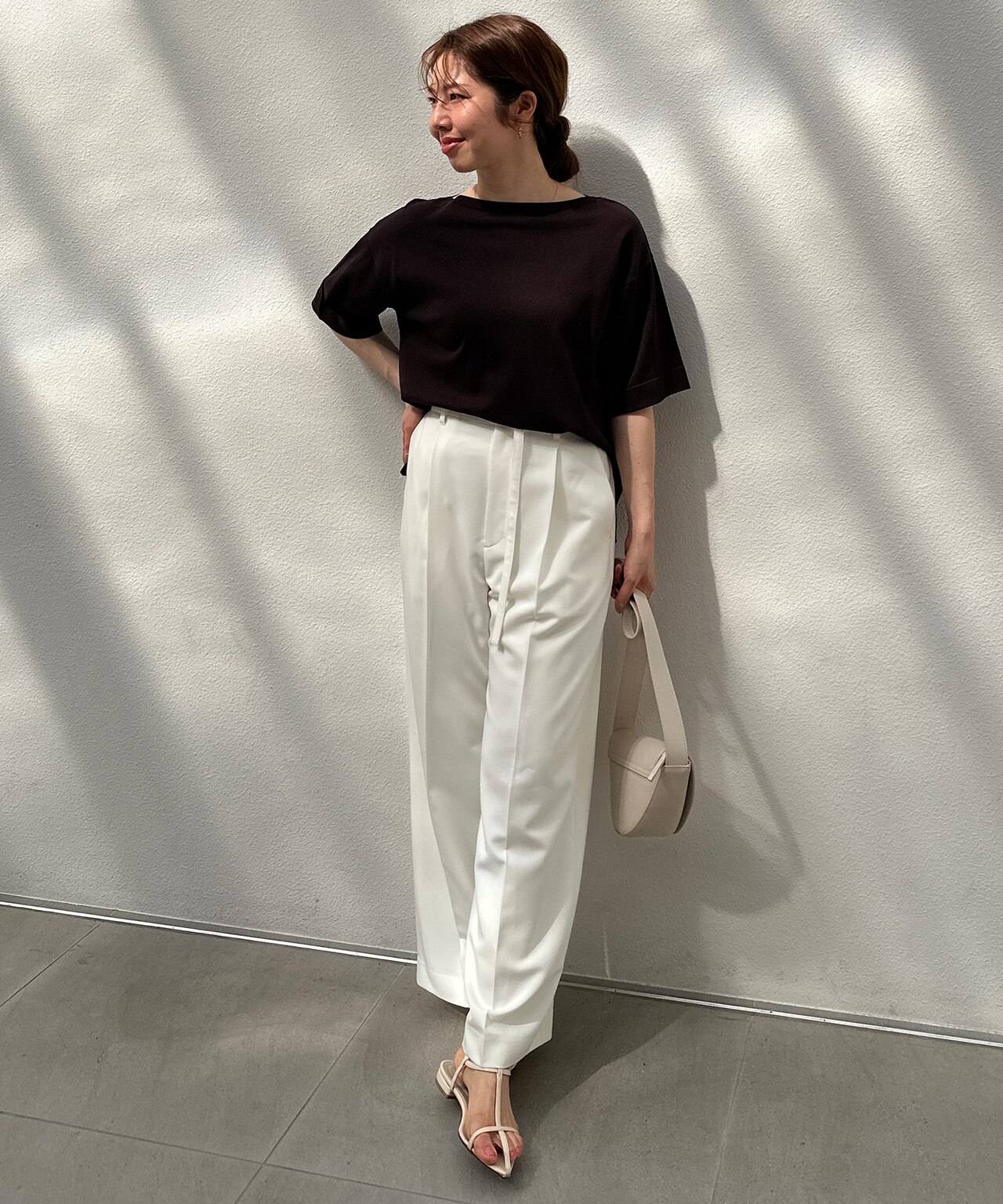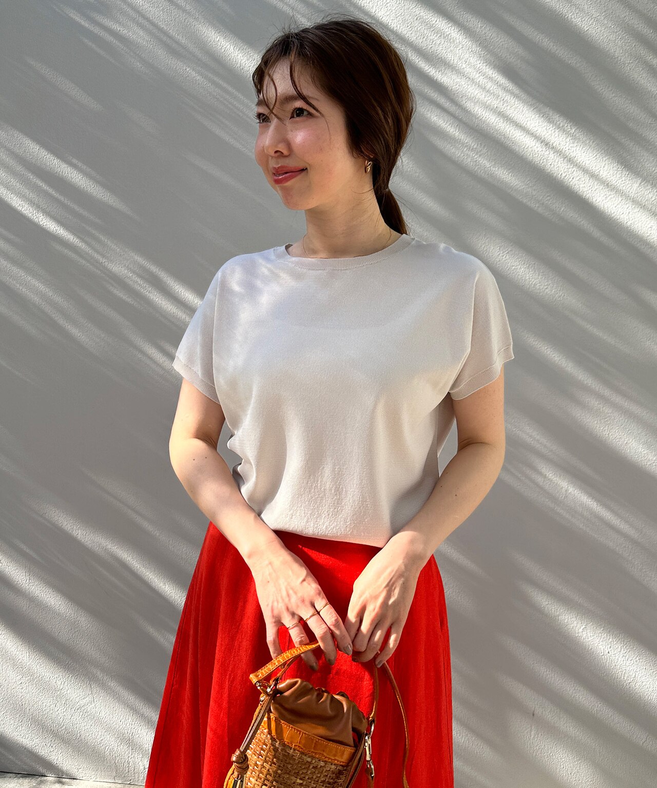 ボトムスにインしても収まりがよく、フレンチスリーブが肩を華奢に見せてくれます。