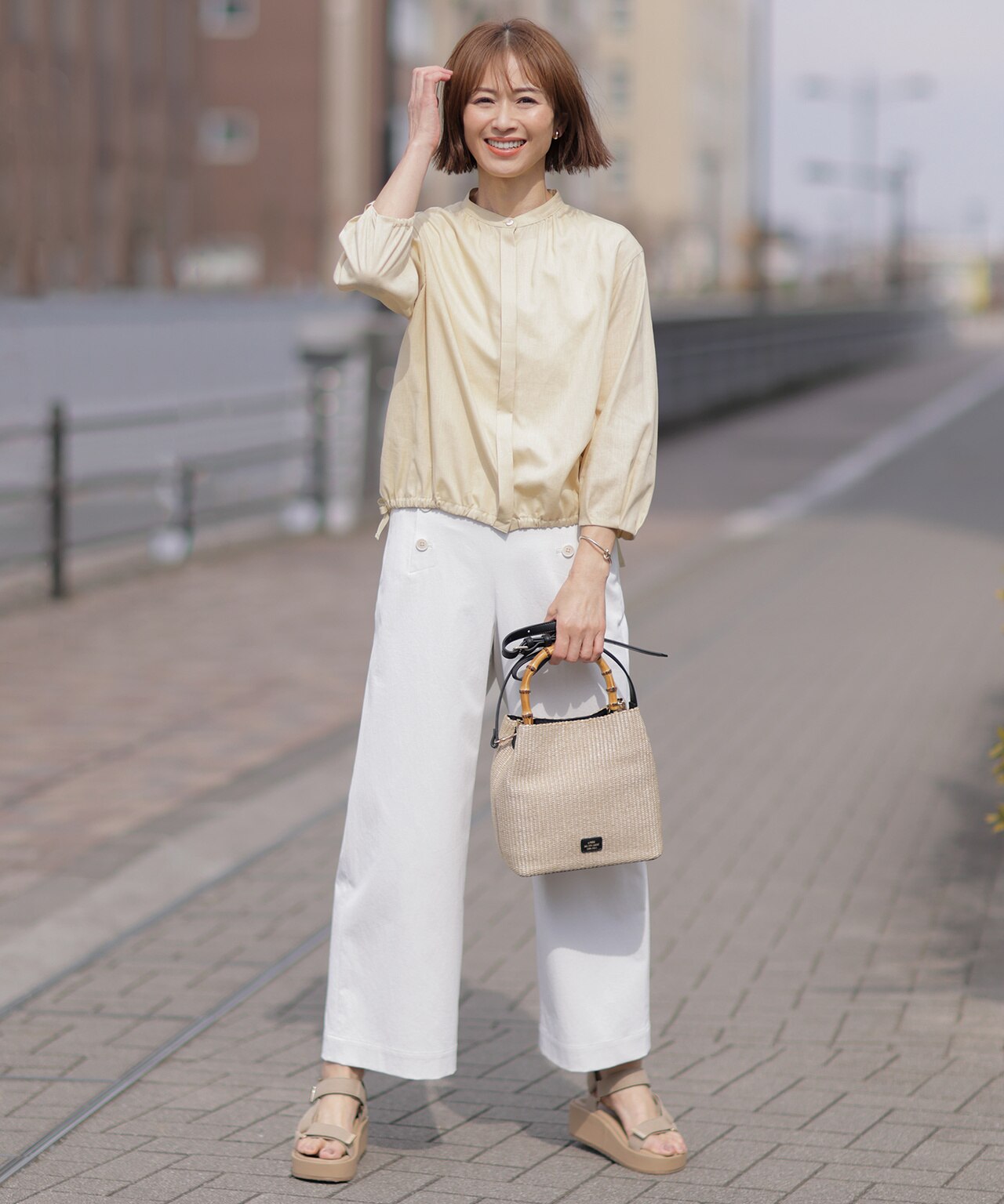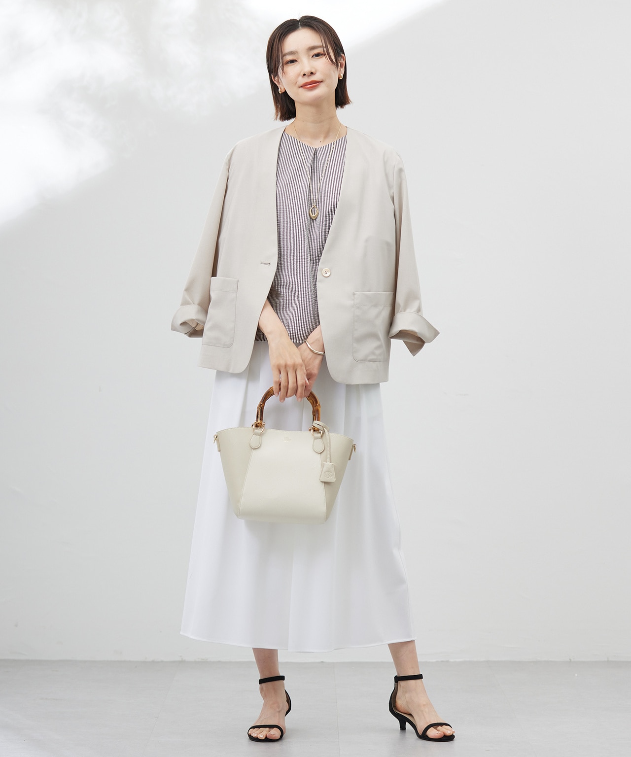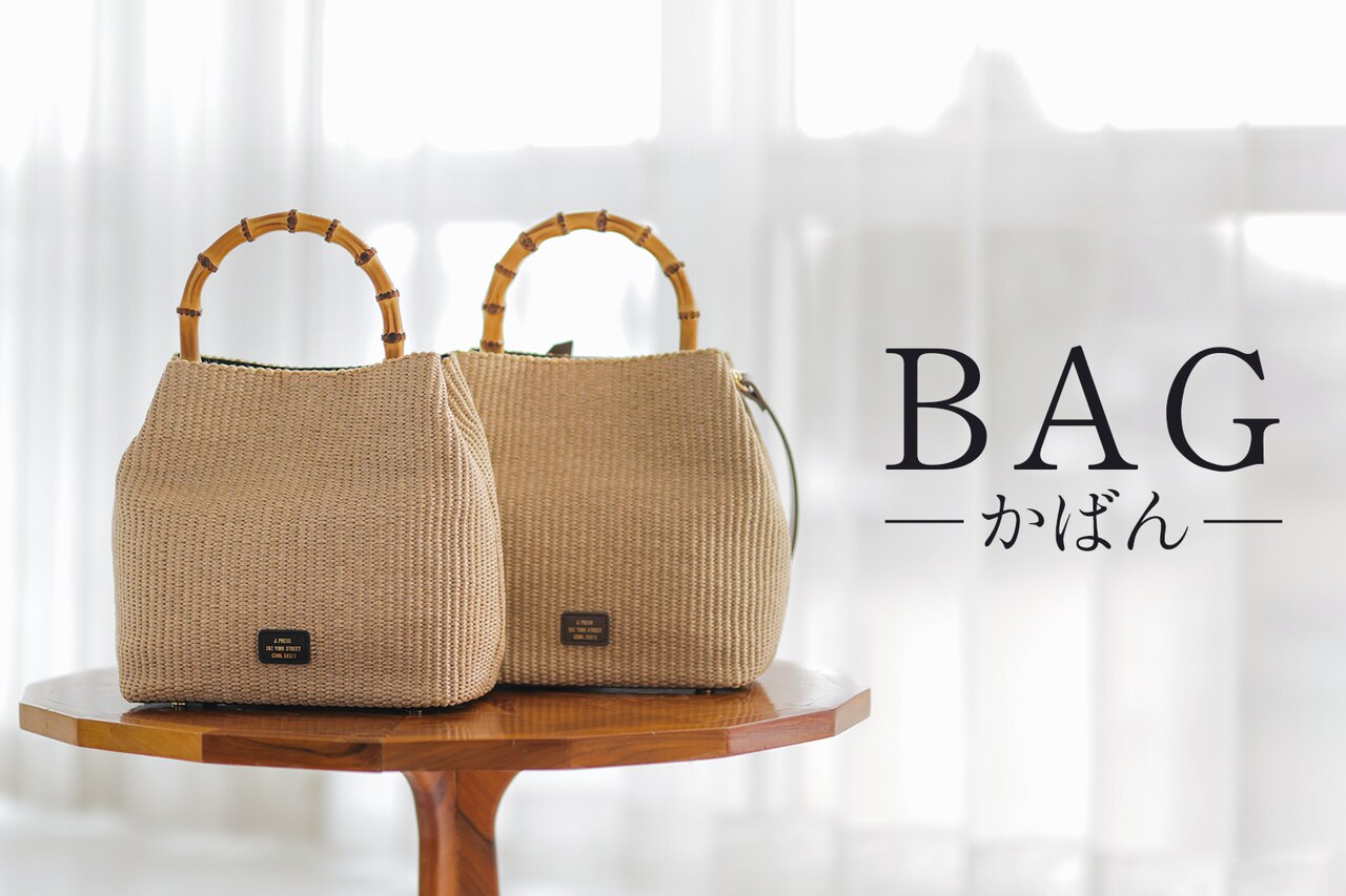 上品な風合いのカゴ調のシートを使用したかごバッグ。高級感のあるバンブーハンドルが夏のコーディネートのワンポイントに。ペットボトルや長財布、折り畳み傘など収納でき、ワンハンドルのため重量も重くなく機能的です。ロングショルダー付きで肩掛けバッグとしてもご使用頂けます。どんなコーディネートにも合わせやすく、鮮度が上がるおすすめのバッグです。
