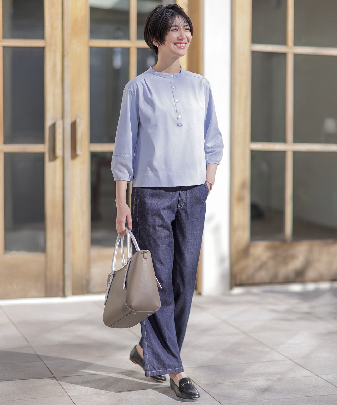 上品な佇まいでコーディネートを格上げする バケツ型キャンバスバッグ