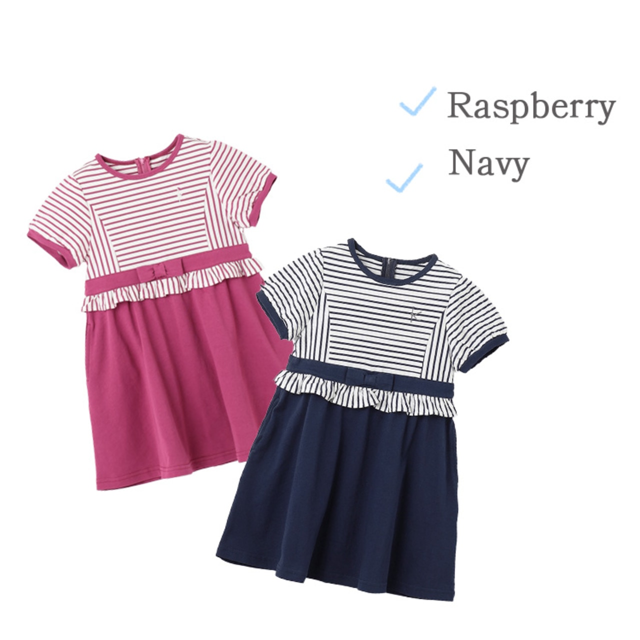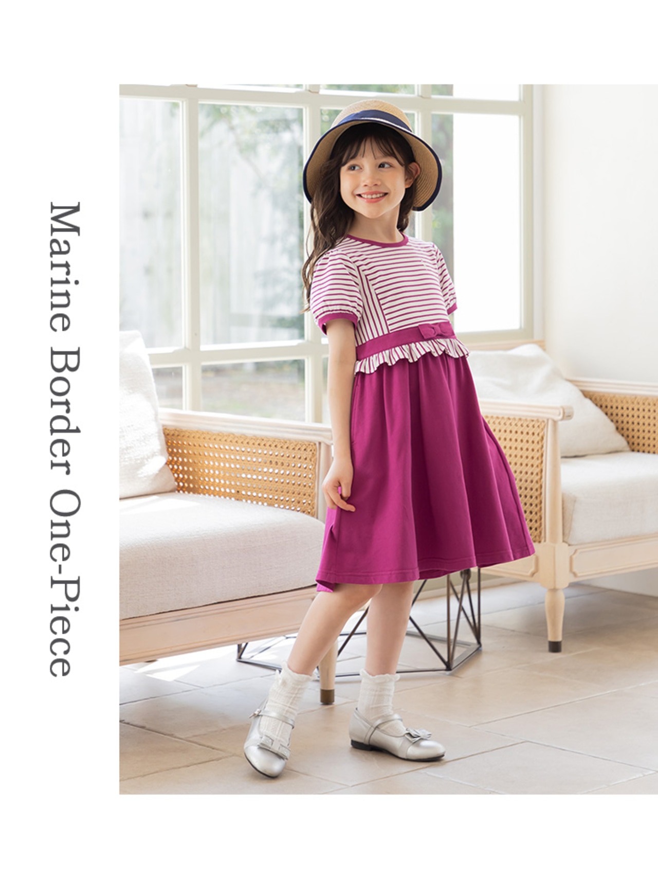 組曲らしいボーダートップスと無地のスカートの切り替えワンピースです。