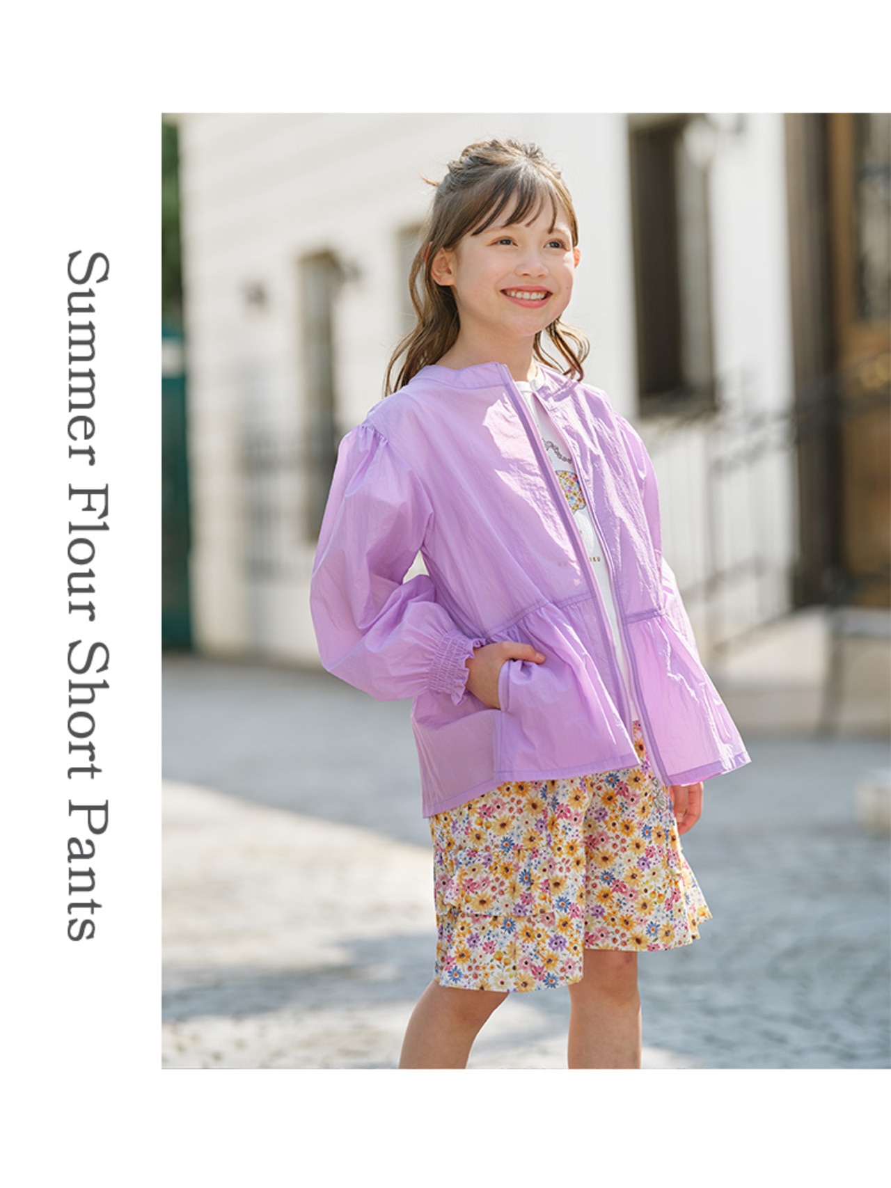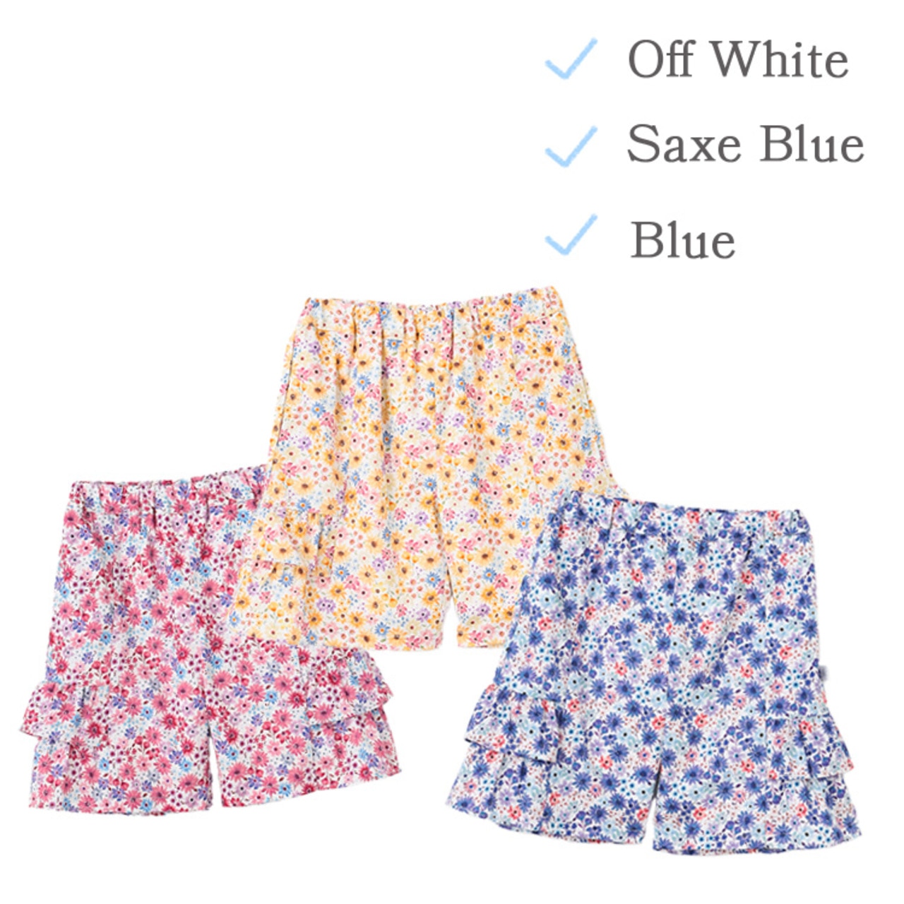 夏の太陽を思わせるお花をふんだんに散りばめた、やや長めの花柄ショートパンツです。