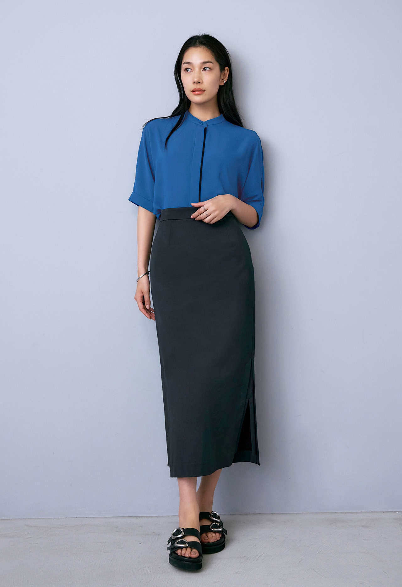 定番人気のバンドカラーブラウスが新色を加え今季も登場!