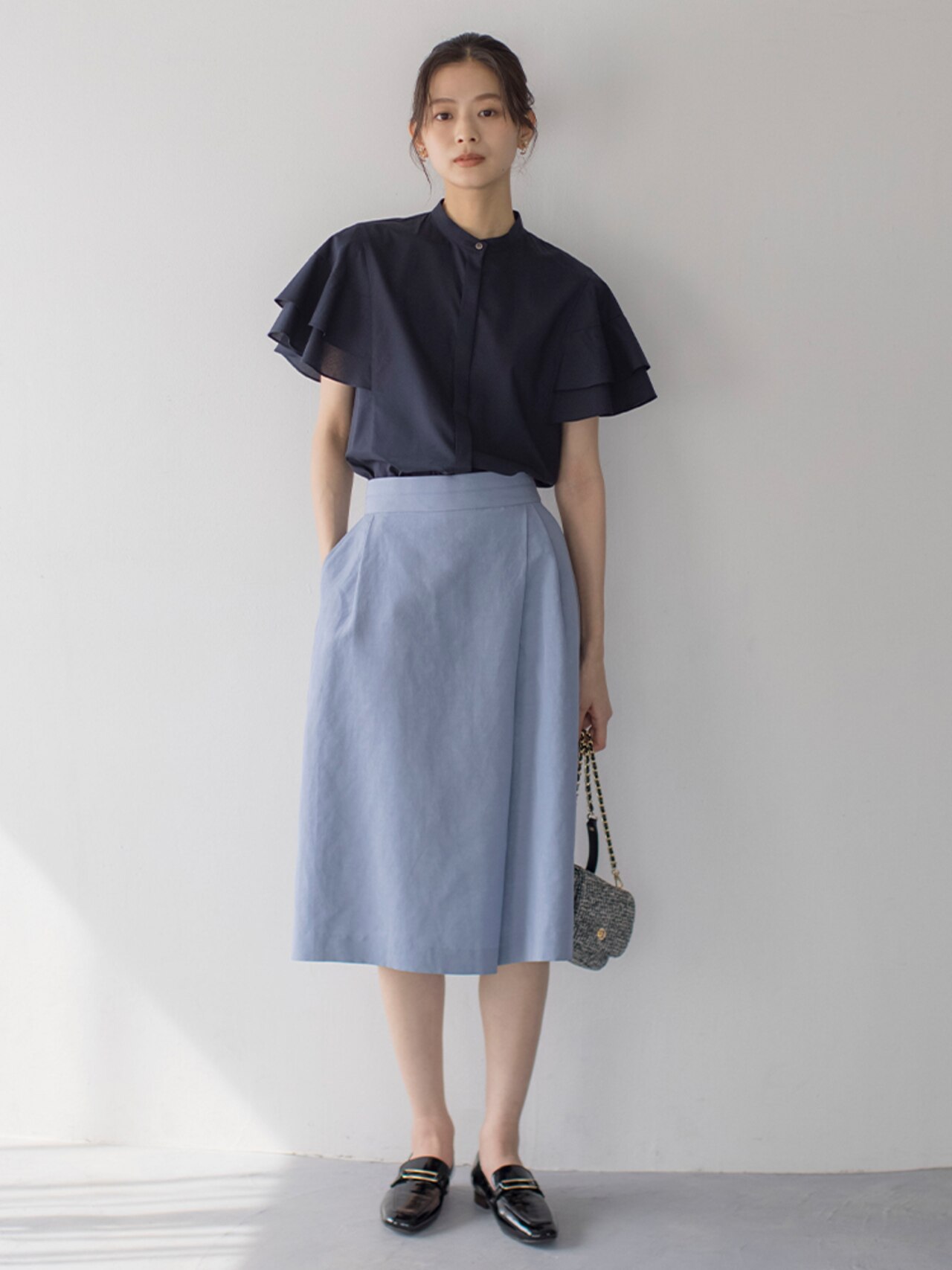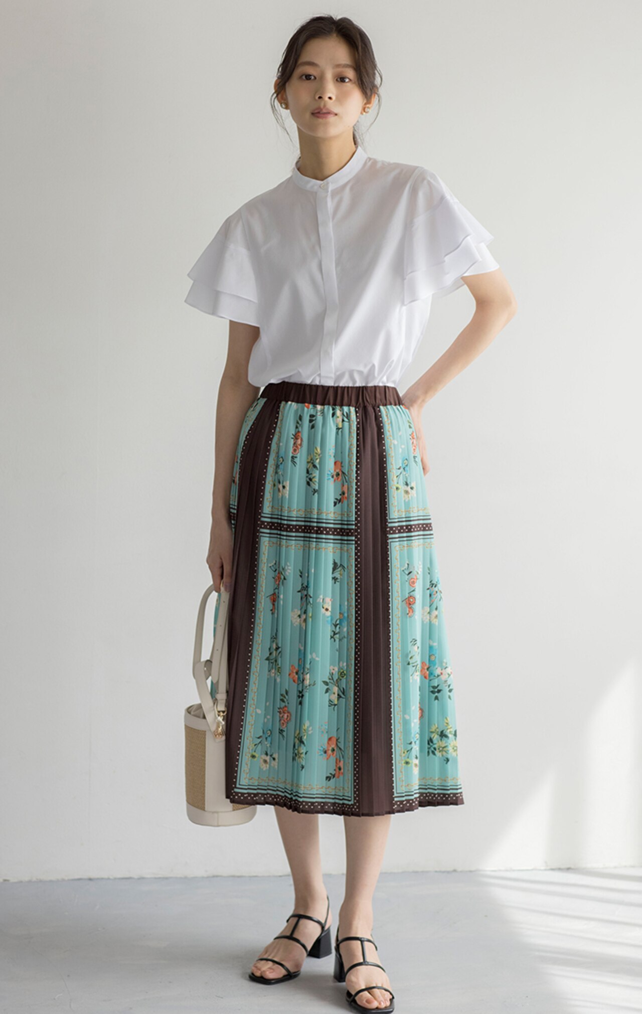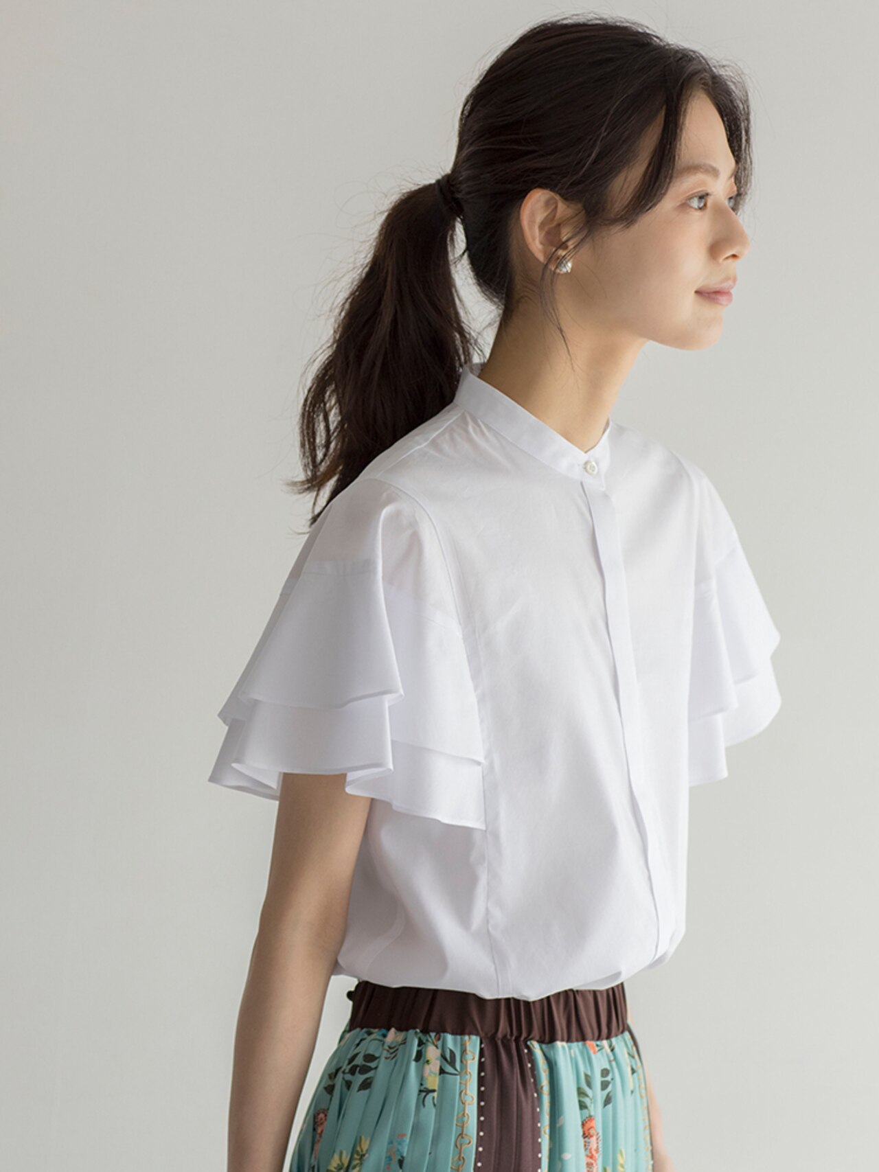 洗練された白ブラウスは花柄スカートを合わせることで華やかさが引き立ちます。サラサラした肌触りと風通しの良さで快適な着心地です!