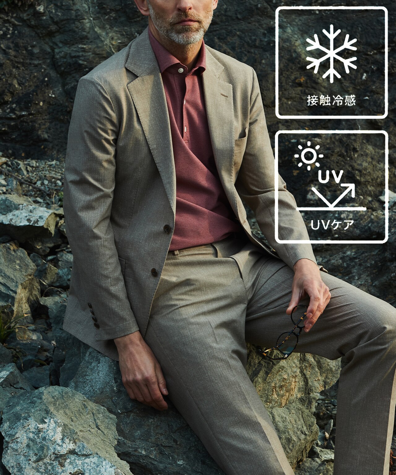 クールビズが浸透し、盛夏まで"キチンと感を保ちながらカイテキに過ごせる"セットアップが人気です。                                             夏に必要な機能を全て備える、キチンとしたクールビズSET UP=五大陸オリジナル“COOL DOTS”をご紹介します。