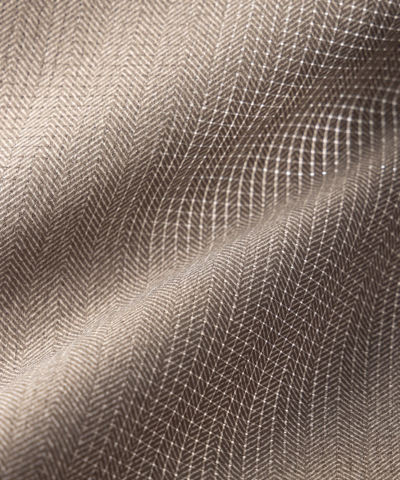 ジャケット:テーラードジャケットの型紙を使用しているため立体感があり、着用感はラクかつどこからみても美しいライン。スーツの上衣よりウエストを絞り着丈を短くする事で、軽い生地を最大限に生かしたすっきりとスタイリッシュな印象に。