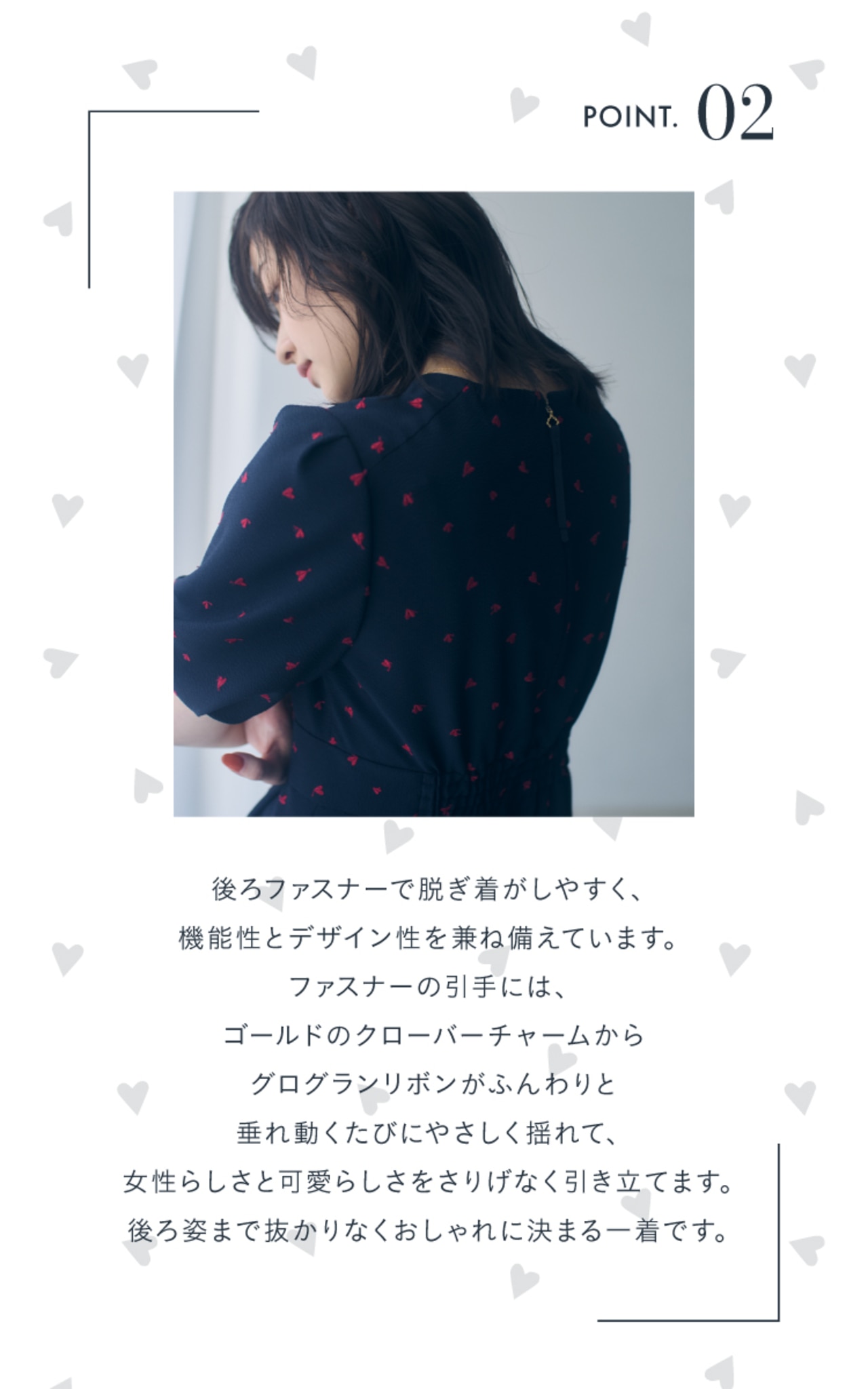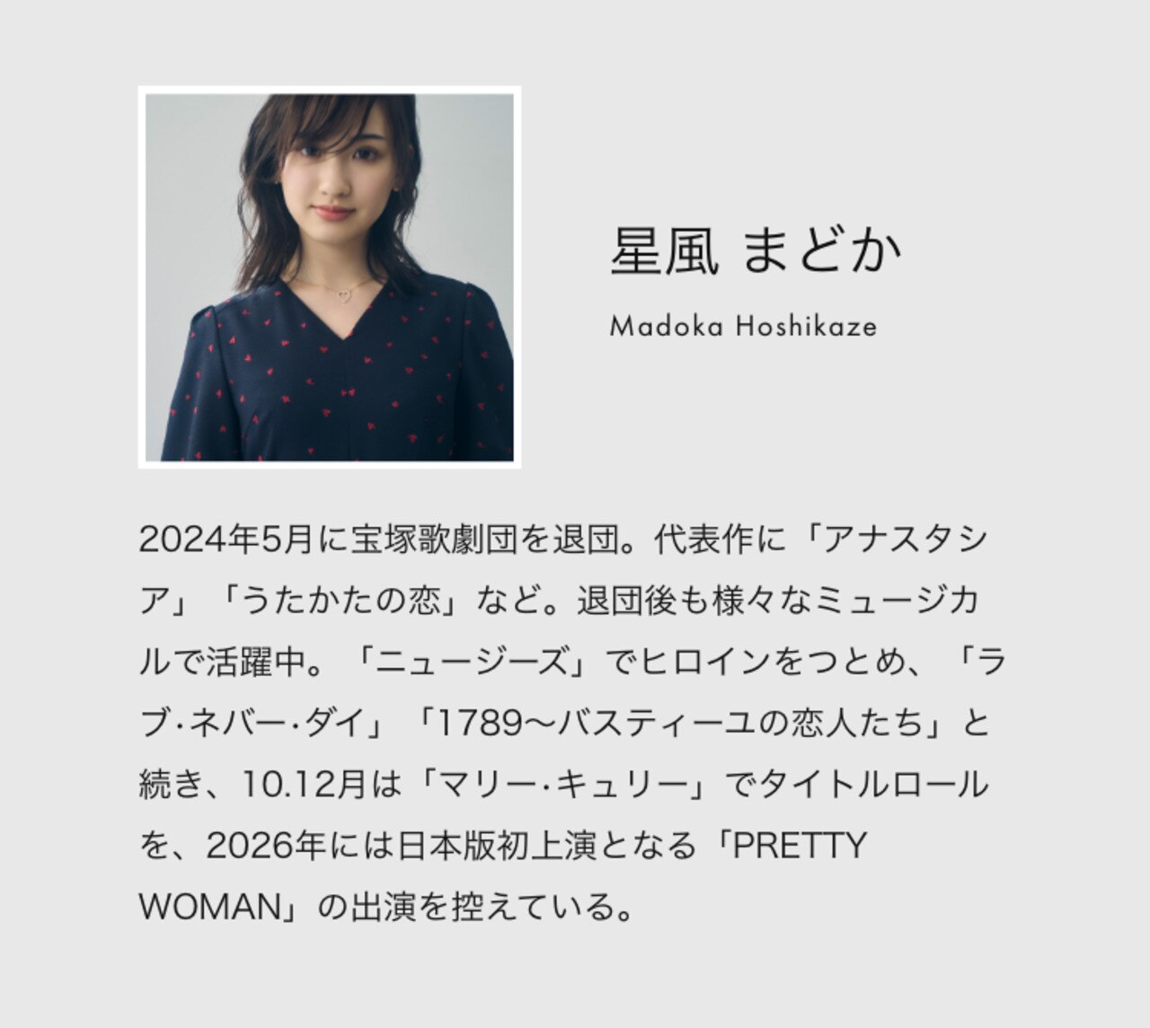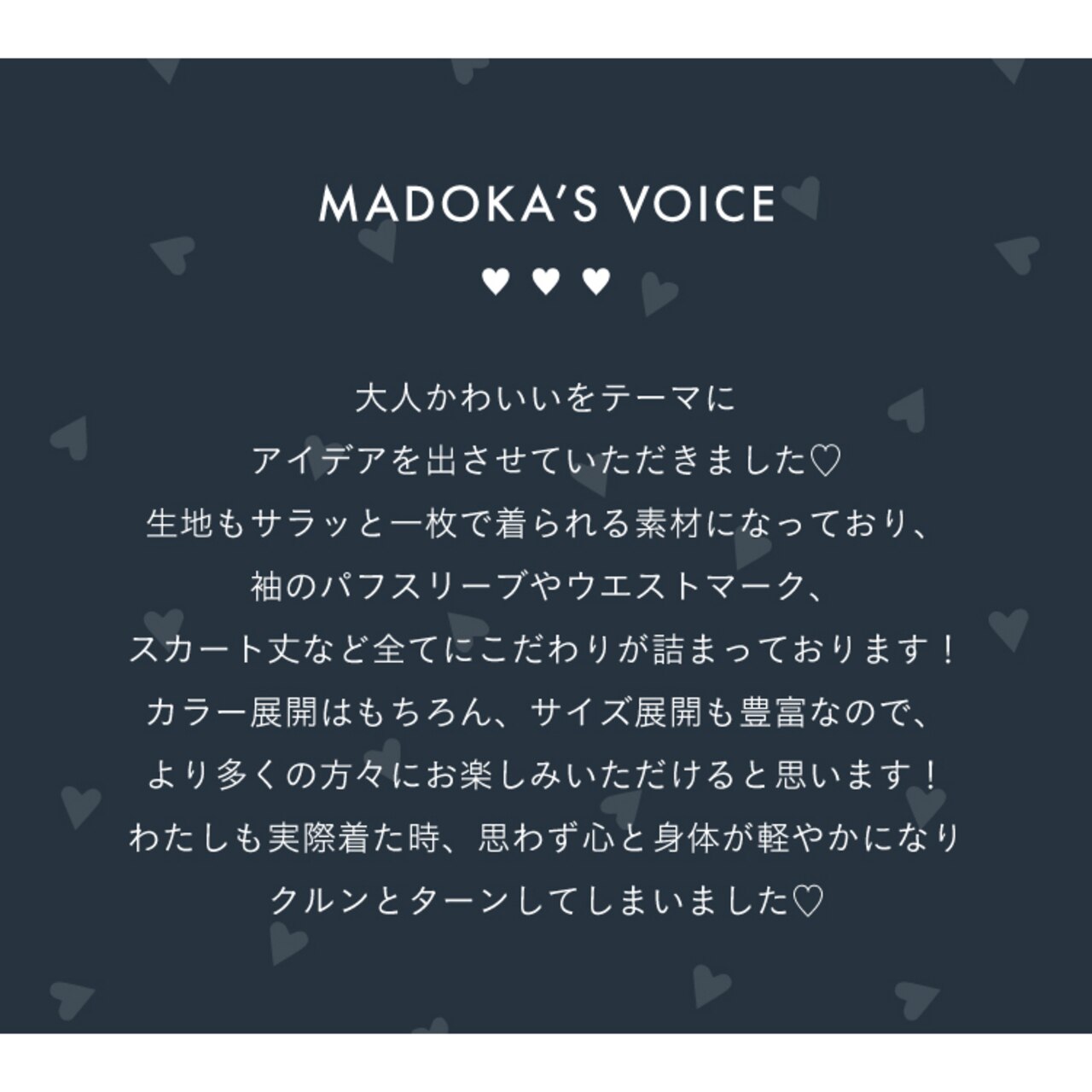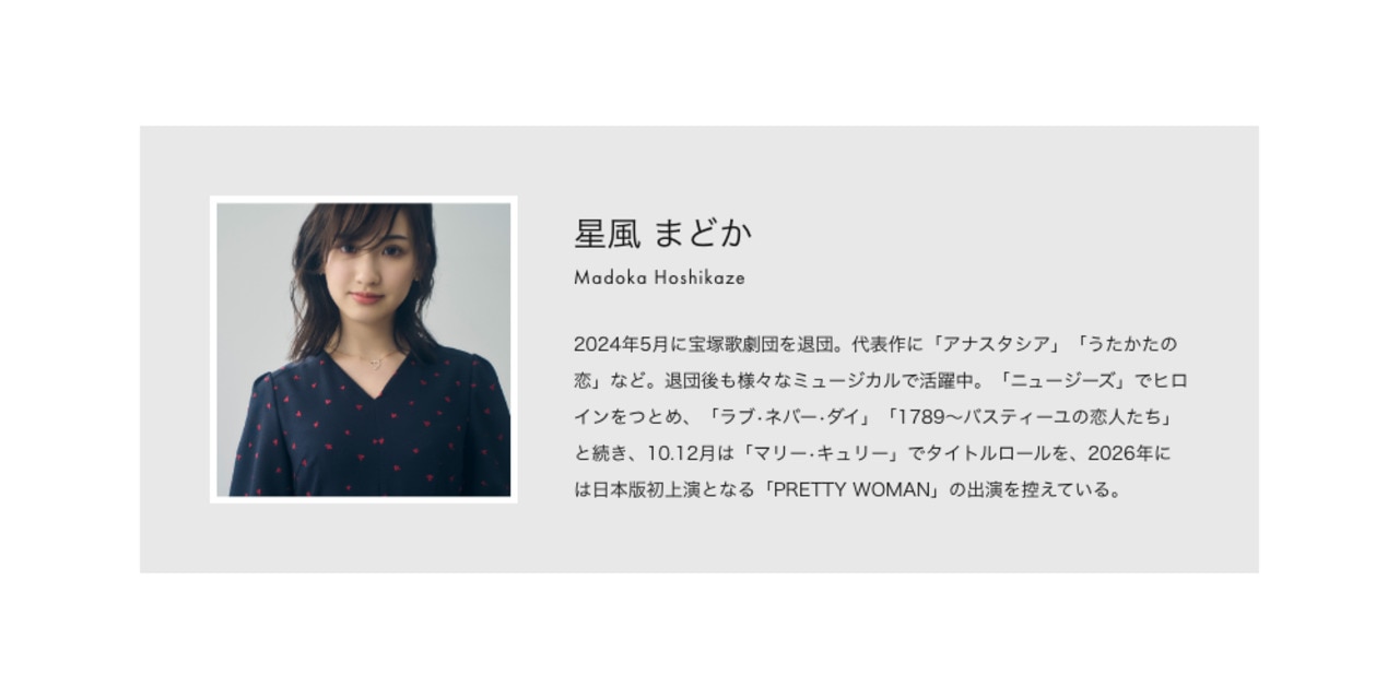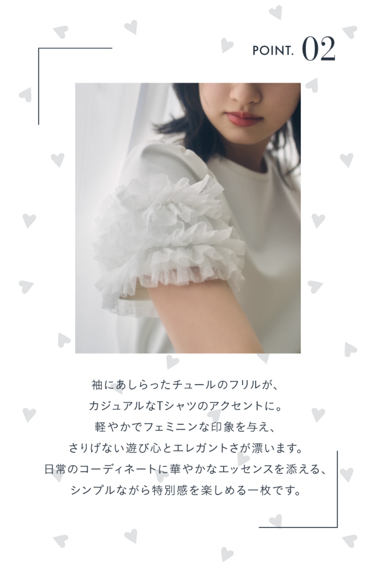 女優・星風まどかさんとのスペシャルコラボレーションコレクション。今回は、小さなハートの刺繍が目を引く【IN MY HEART】と、愛らしいドットチュールフリルが袖を彩る【DOT GARLAND】の2アイテムをご紹介します。どちらも、星風さんのエレガントな魅力と繊細な感性が光る特別な一着。シンプルでありながら、どこか特別な存在感を放つ1着はあなたの毎日を美しく彩ります。