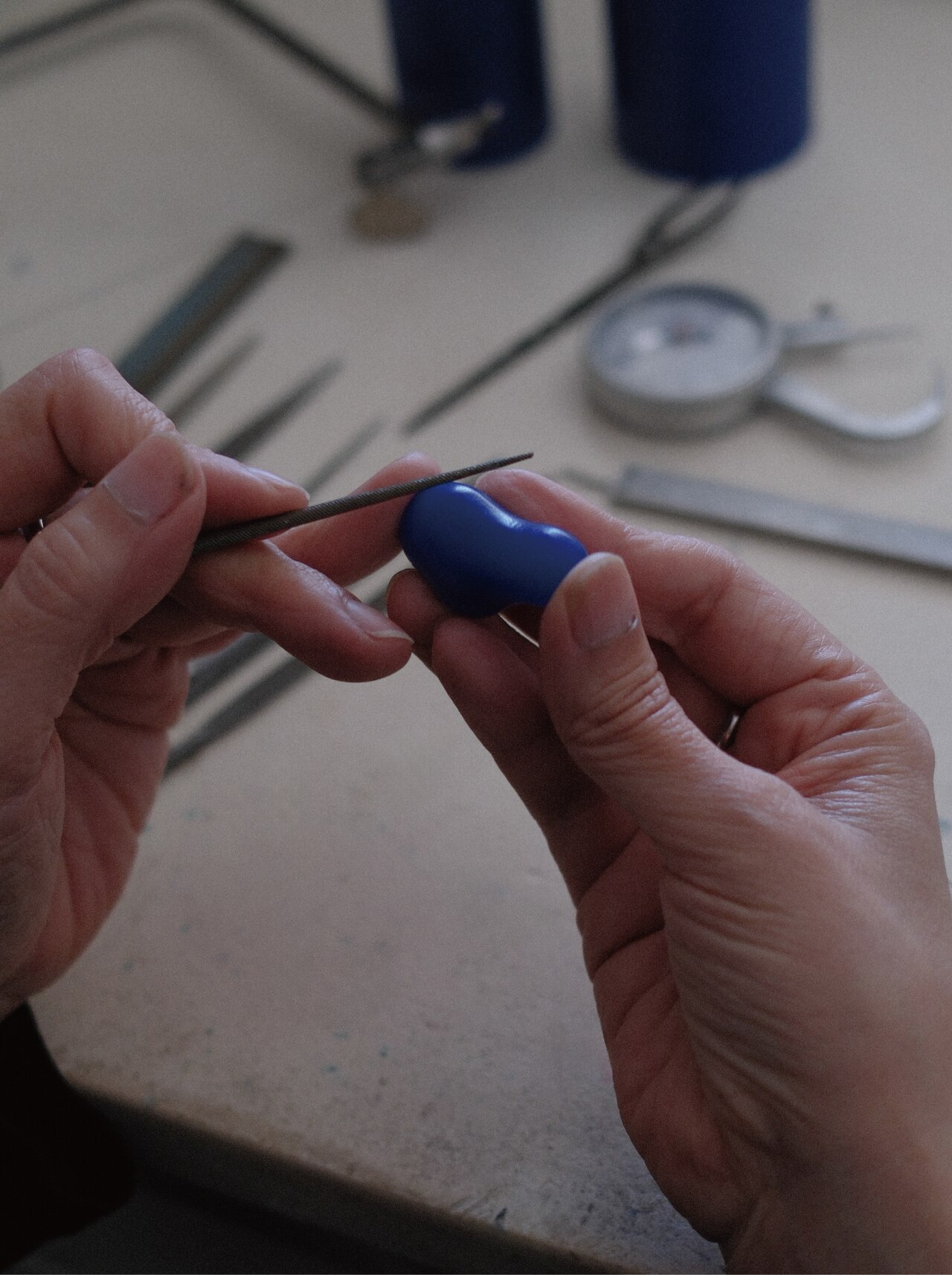 代官山のアトリエを拠点とし、建築・デザインの経験を背景にアクセサリーの枠を超えた彫刻的な美しさを追求。自然の形や生命に着想を得た、艶やかな曲線と膨らみが特徴。手仕事による細やかな質感が宿り、触れるたびに素材と形の魅力が穏やかに感覚を刺激するジュエリー。