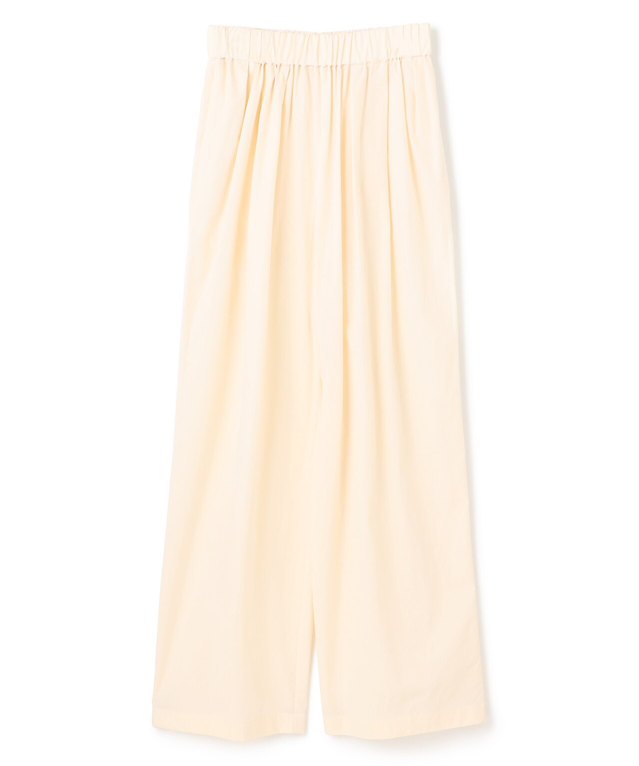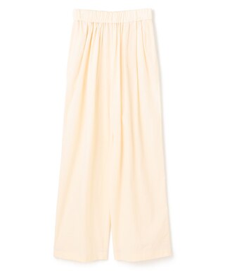 タックとギャザーで作る立体感が美しいワイドパンツ。ウエストゴムがリラックス感がありながら上品見えするイージーパンツ。裏無しのシャリ感が涼しく春夏秋のスリーシーズン着回しでき、単品ボトムとしても使いやすいシルエット。Tシャツやロングニットに合わせて、こなれ感の出るパンツです。