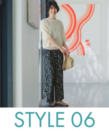 夏映えメッシュ×柄パンツコーデ
