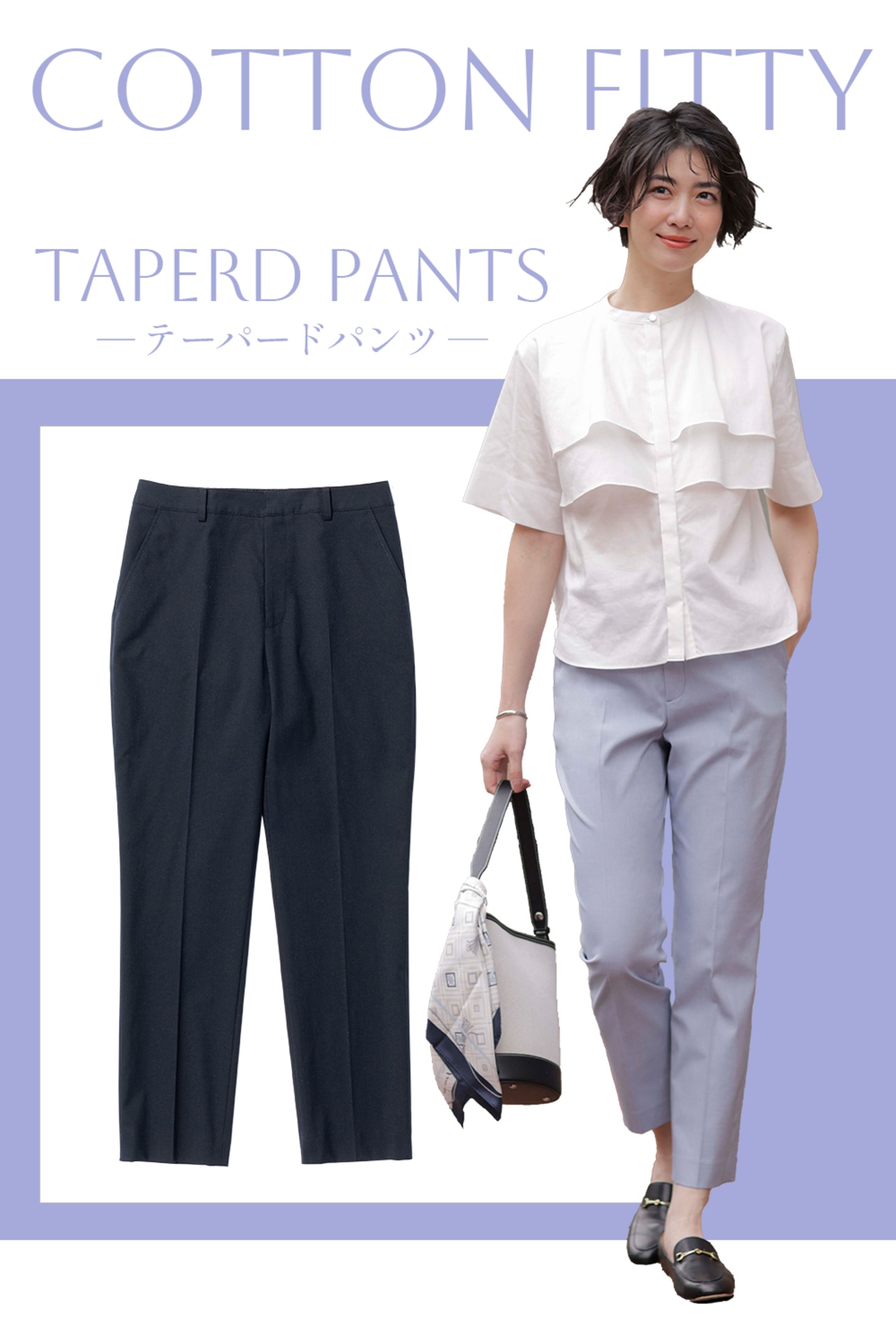 スラっとした美シルエットに愛用者も多いテーパードパンツは、