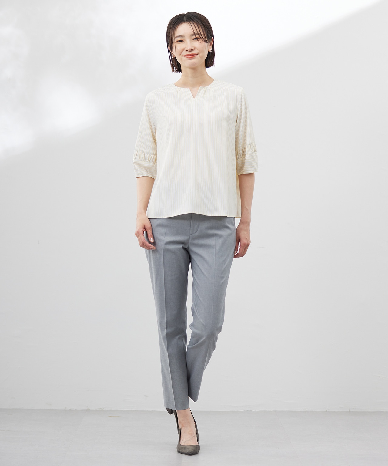 現在のトレンドにもマッチするややワイドなストレートシルエットで、通勤スタイルはもちろん、