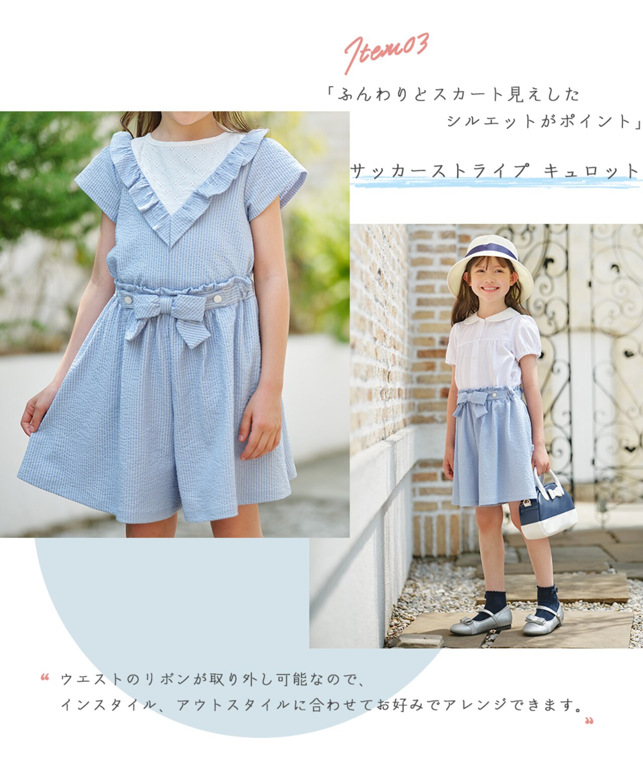 【110-140㎝】スカラップポケット7分丈 パンツ