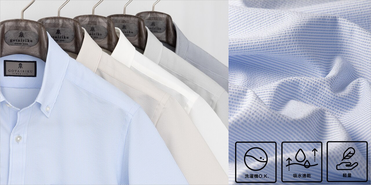 - とにかく涼しい/酷暑対応【シワになりにくい/吸水速乾】クールマックスサッカーシャツ/GOTAIRIKU