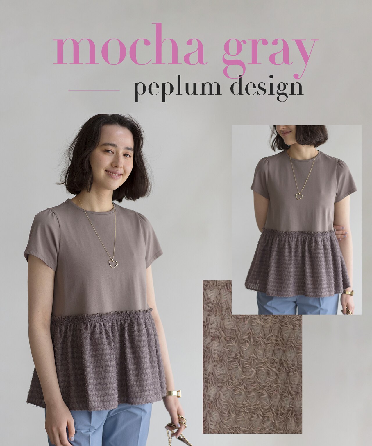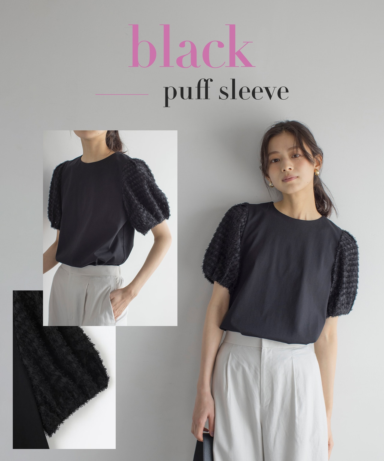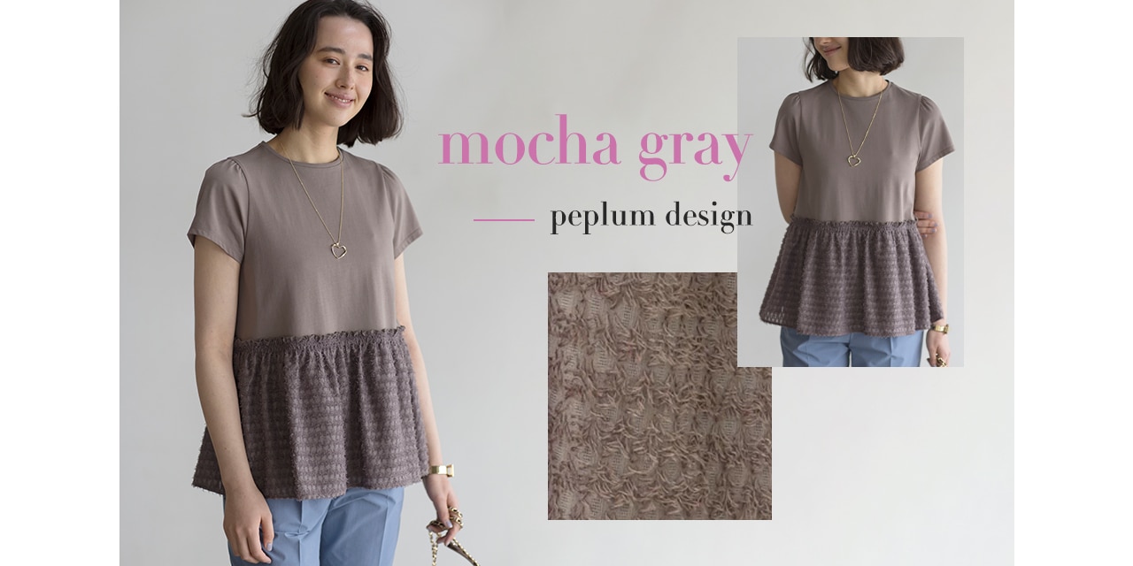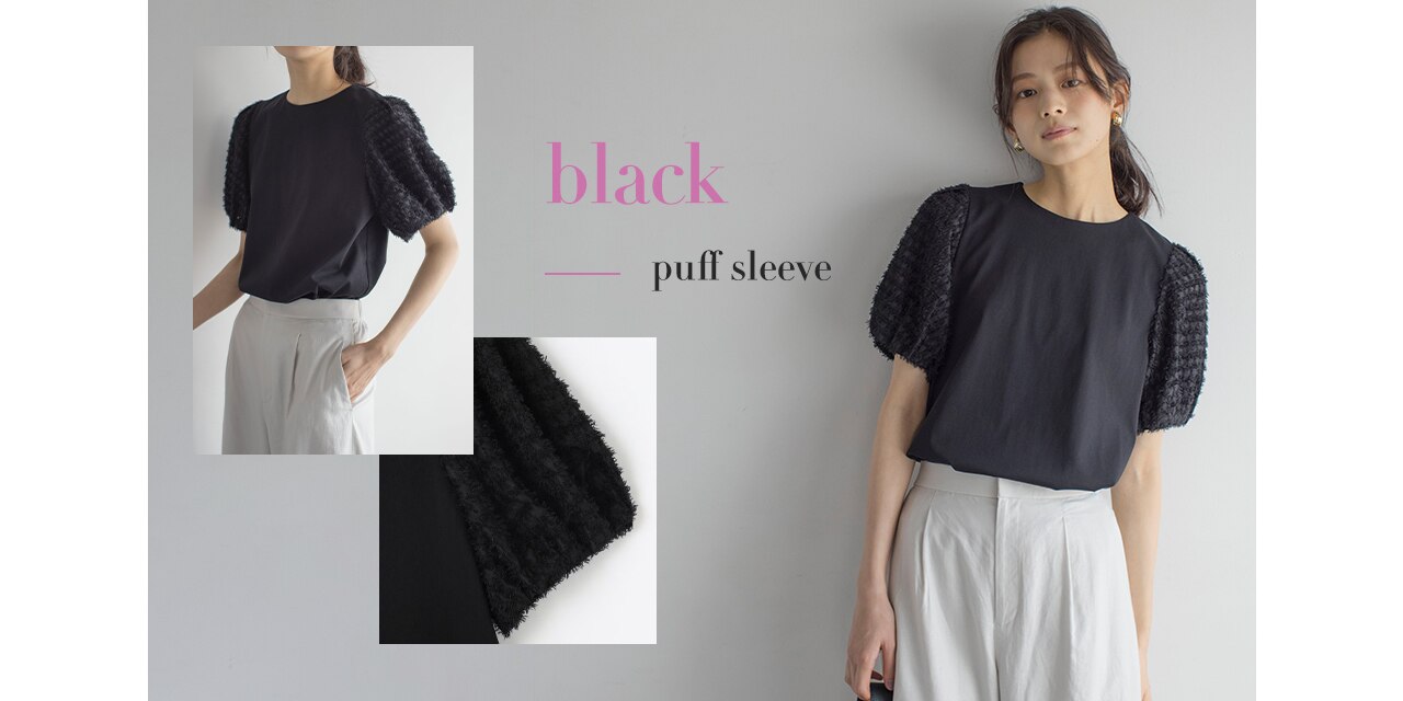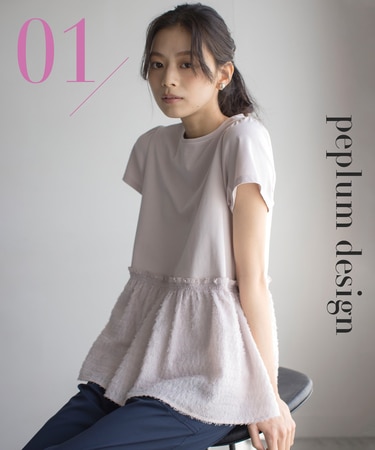 ギャザーを寄せた華やかなペプラムデザインと軽やかな5分袖のパフスリーブデザインの2typeです。
