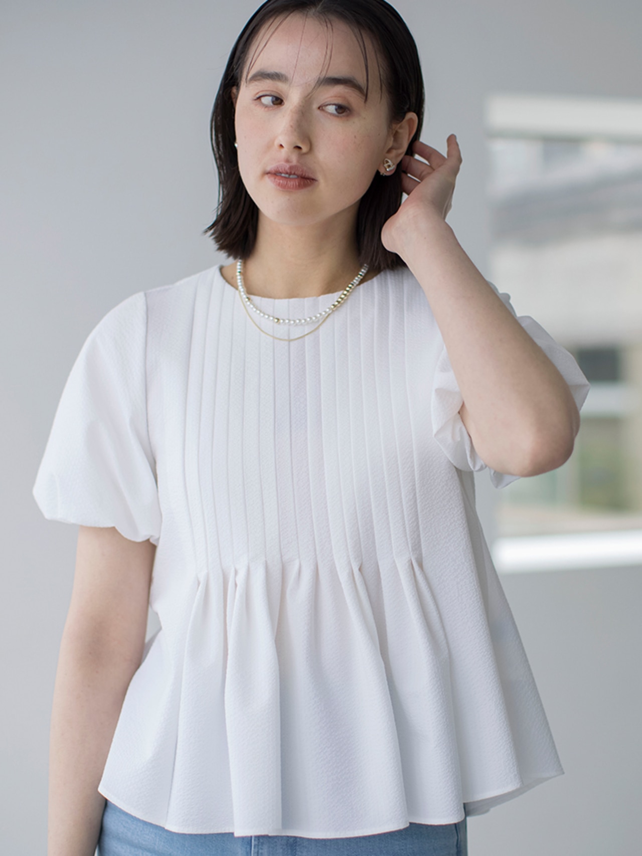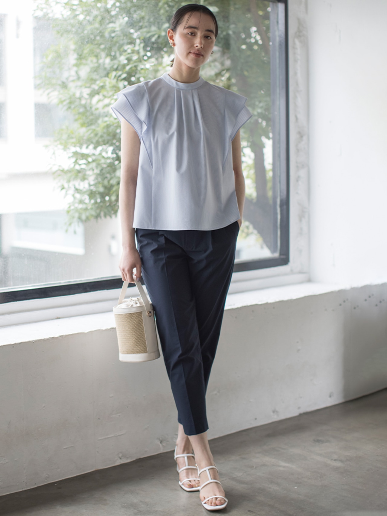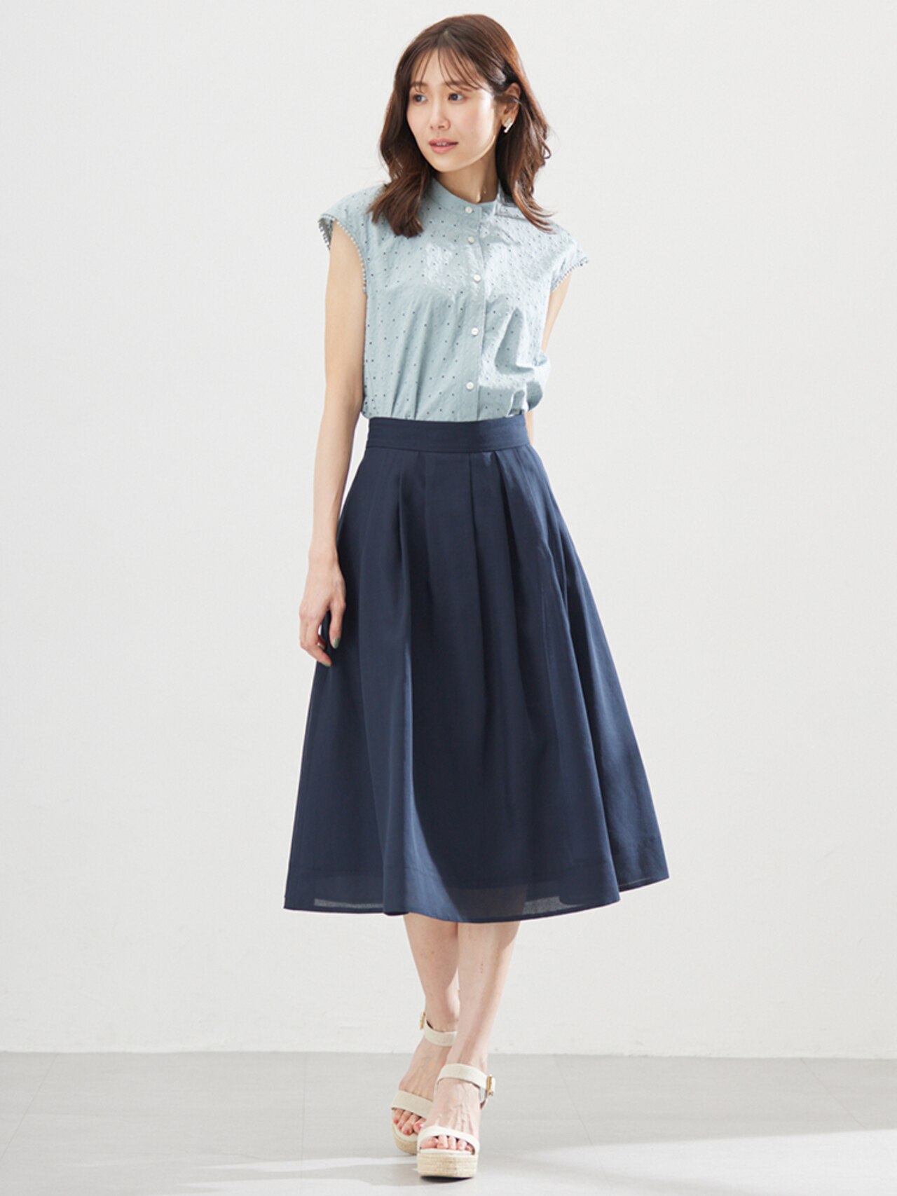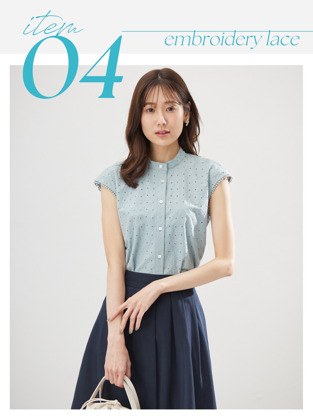 レースの持つ程よい抜け感が魅力のノースリーブブラウス。少しゆとりのあるシルエットで涼しく着られます!