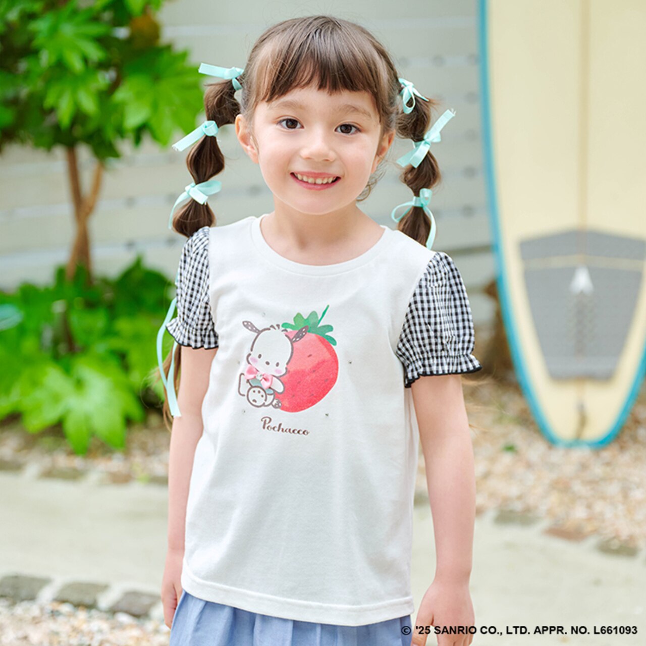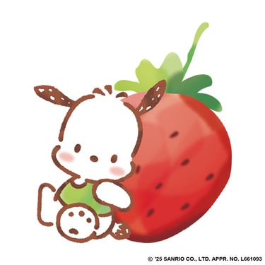 大きないちごにもたれかかる、キュートなポチャッコがポイント。