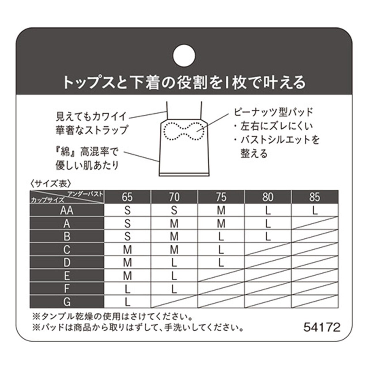 胸元や肩から下着見えを心配することなく、安心して着用できるスクエアデザイン。