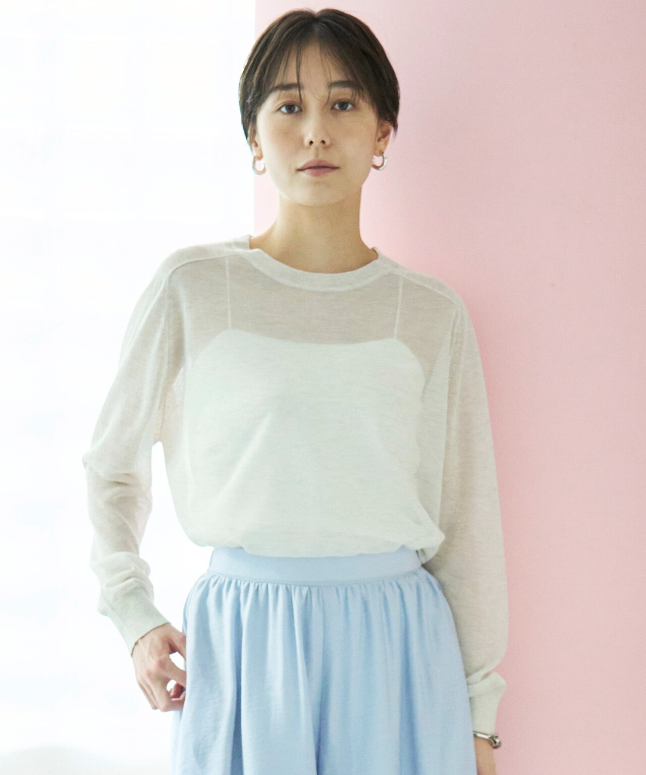 トレンドのシアートップスや、ブラウスのインナーとしても大活躍!