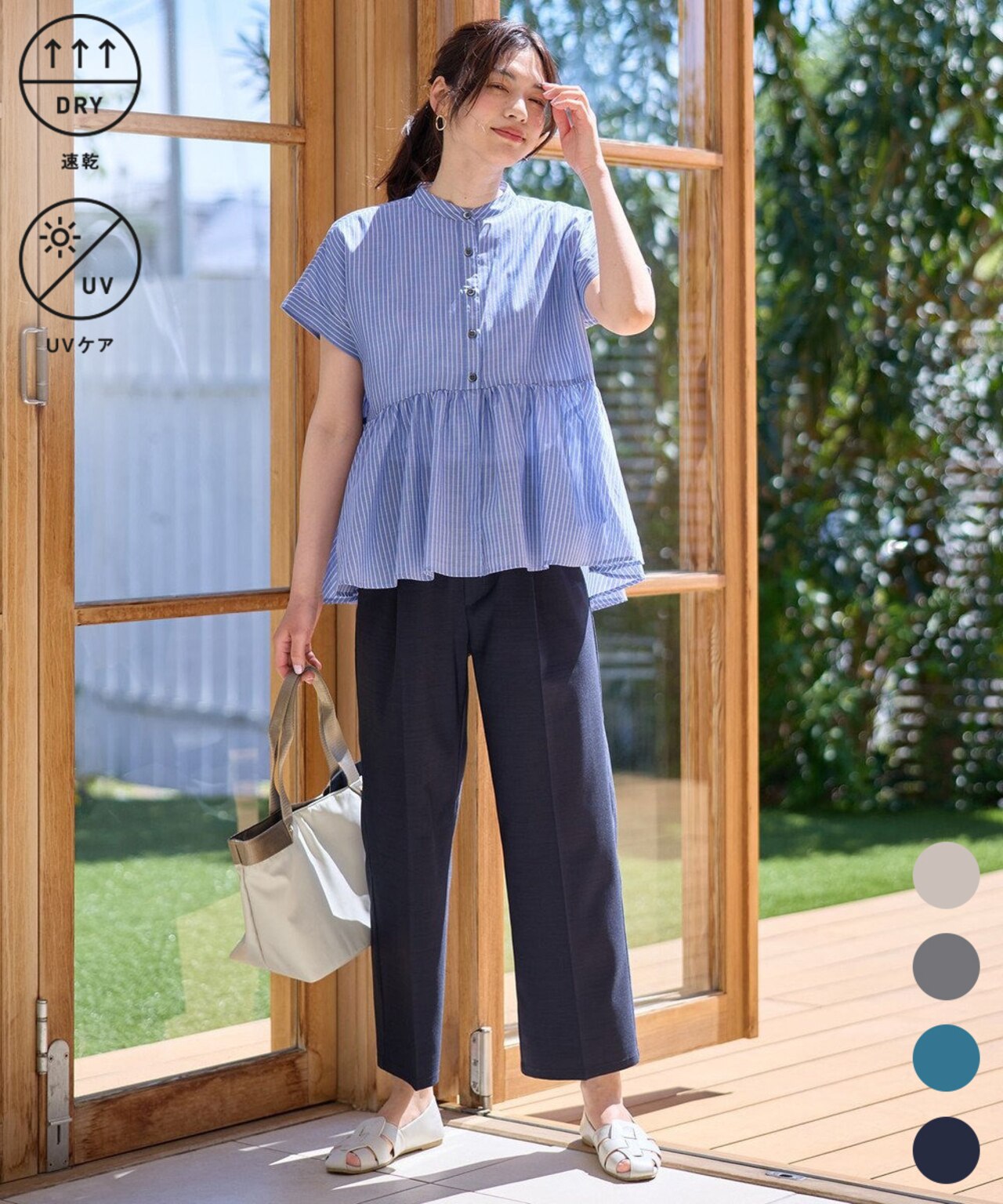 - 【洗濯機可/ウエストゴム/ストレッチ/UVケア】イージーケアライトストレッチワイドパンツ/ANY
