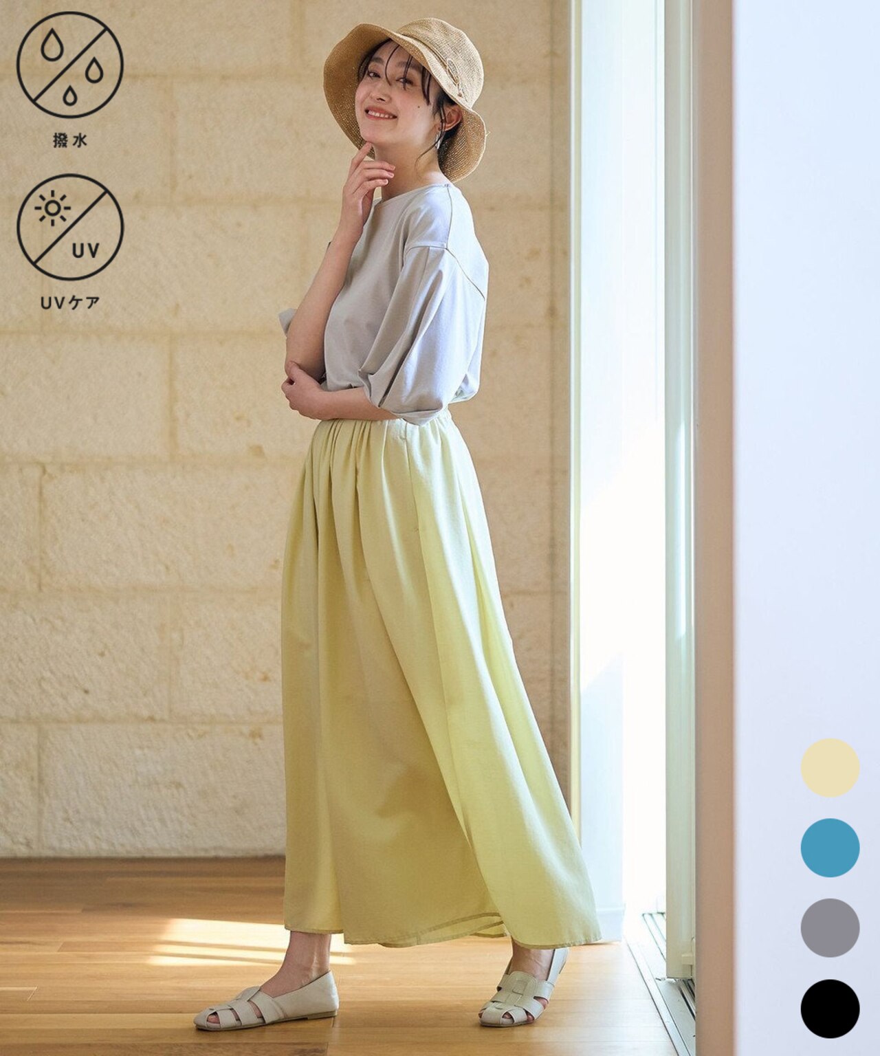 スカート見えパンツで、足さばきがよく動きやすいのが嬉しいアイテム。雨の日も楽しく過ごせる、お手入れ簡単パンツ。【洗濯機可/ウエストゴム/UVケア】スパンボイル撥水スカートパンツ【洗濯機可/ウエストゴム/UVケア】スパンボイル撥水スカートパンツany FAM¥5,999(税込)→¥2,999(税込) -
