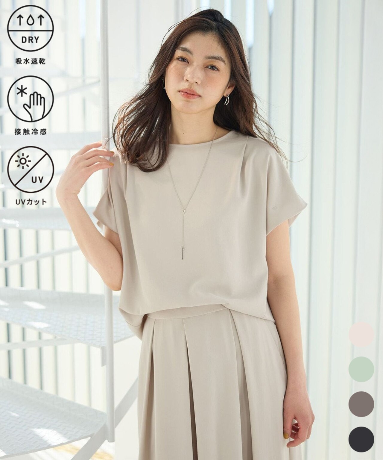 ゆったりシルエットながら、きちんと見えも叶う上品夏ブラウス。吸水速乾・接触冷感・UVカット機能付きで、蒸し暑い季節も快適に。【吸水速乾/イージーケア/UVカット/接触冷感】さらさらDRYブラウス【吸水速乾/イージーケア/UVカット/接触冷感】さらさらDRYブラウスany FAM¥3,999(税込)→¥3,198(税込)