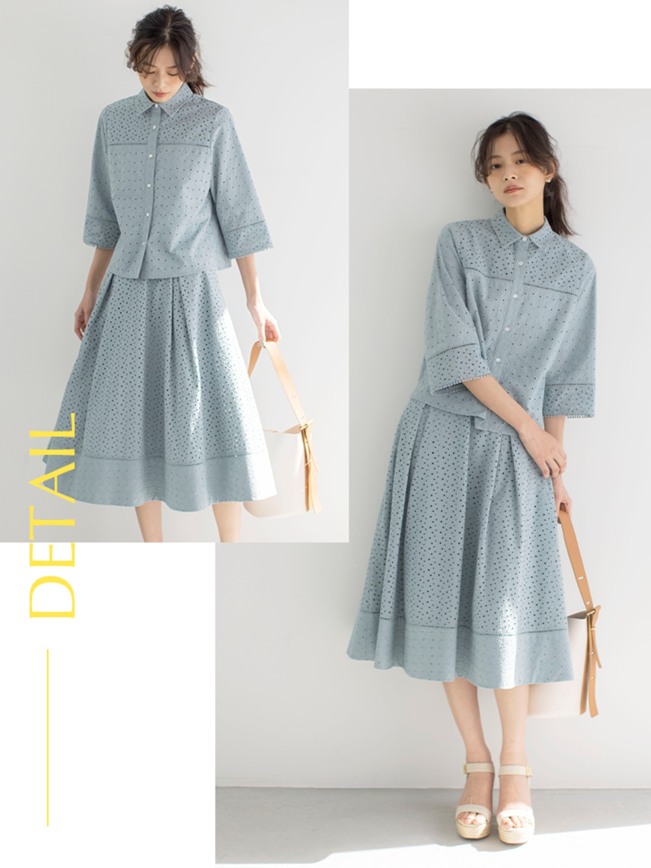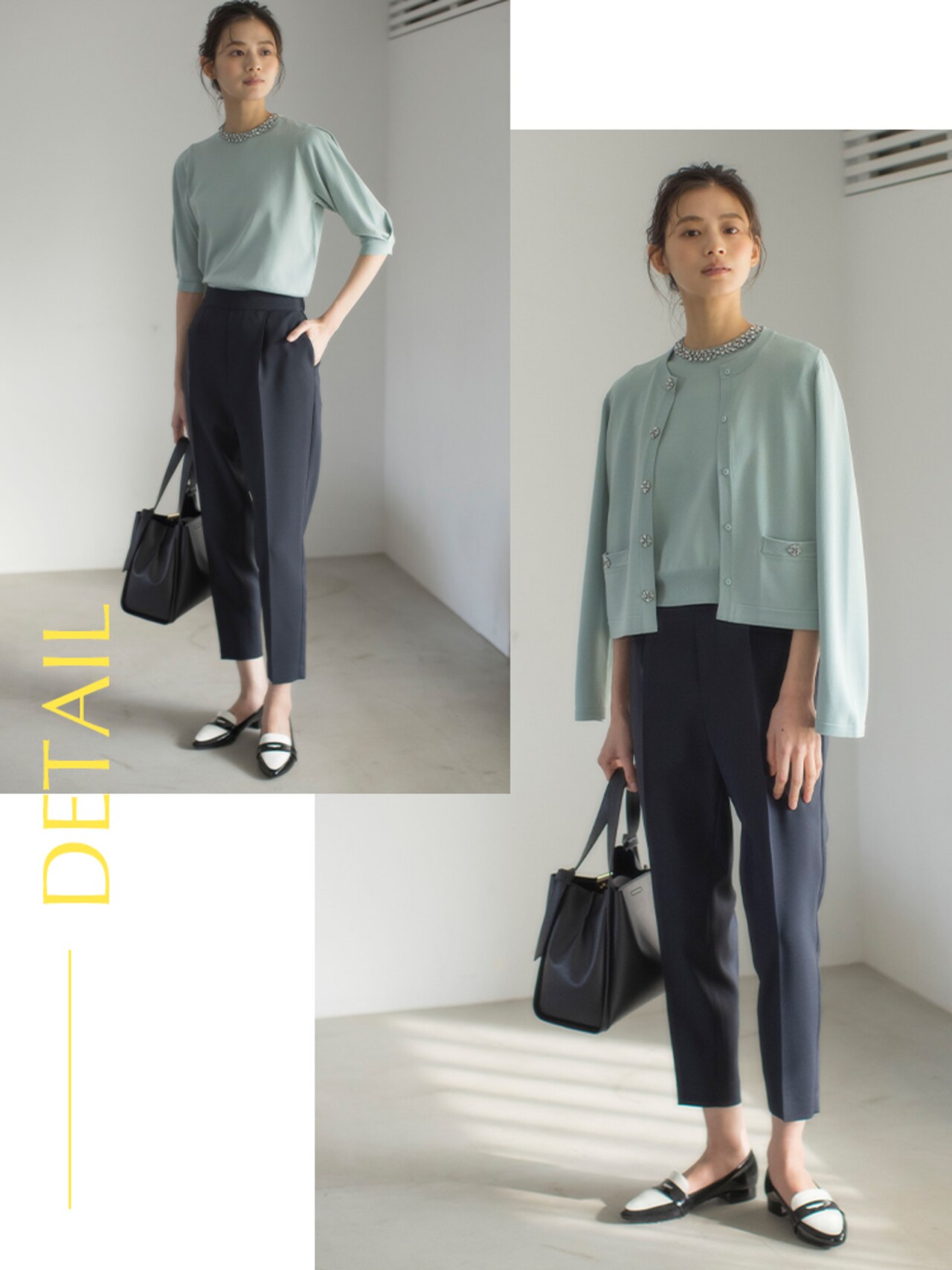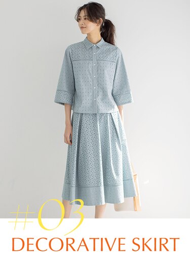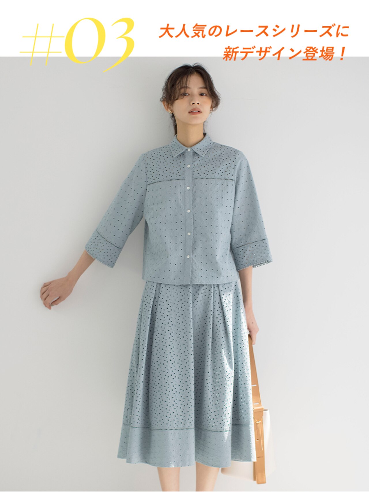 毎年大人気のシリーズから新型スカートが登場!きれいめにもカジュアルにもスタイリングの幅が広がるアイテム。ミントセットアップで夏らしく爽やかに。