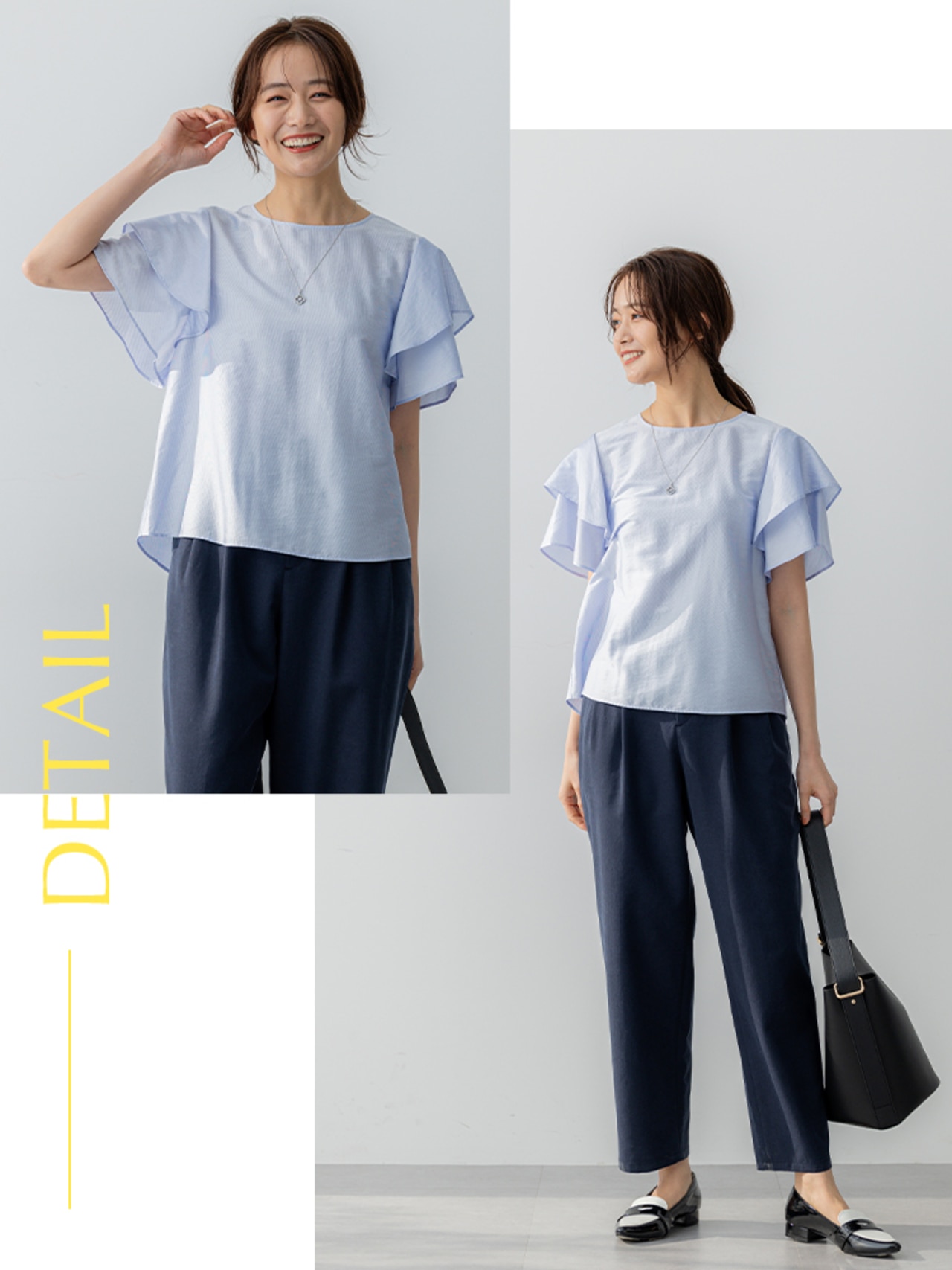 華やかな袖デザインが1枚映えするブラウス。ボトムによってカジュアルにも、フェミニンにも着こなせる万能アイテムです!
