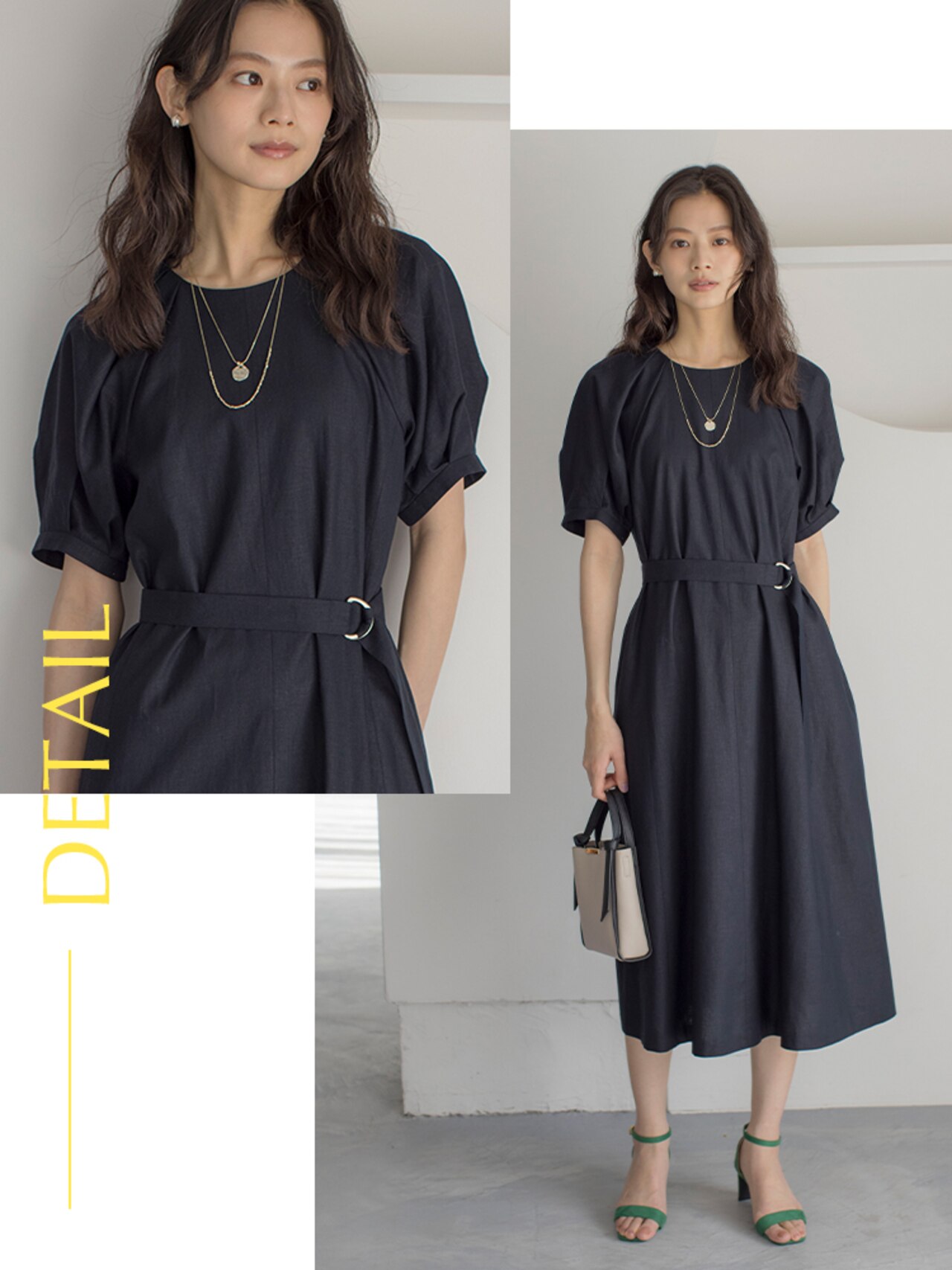 麻混の素材で軽やか涼しげワンピース。これからの季節にもぴったりなアイテムです!ジャケットとのセットアップもおすすめ。