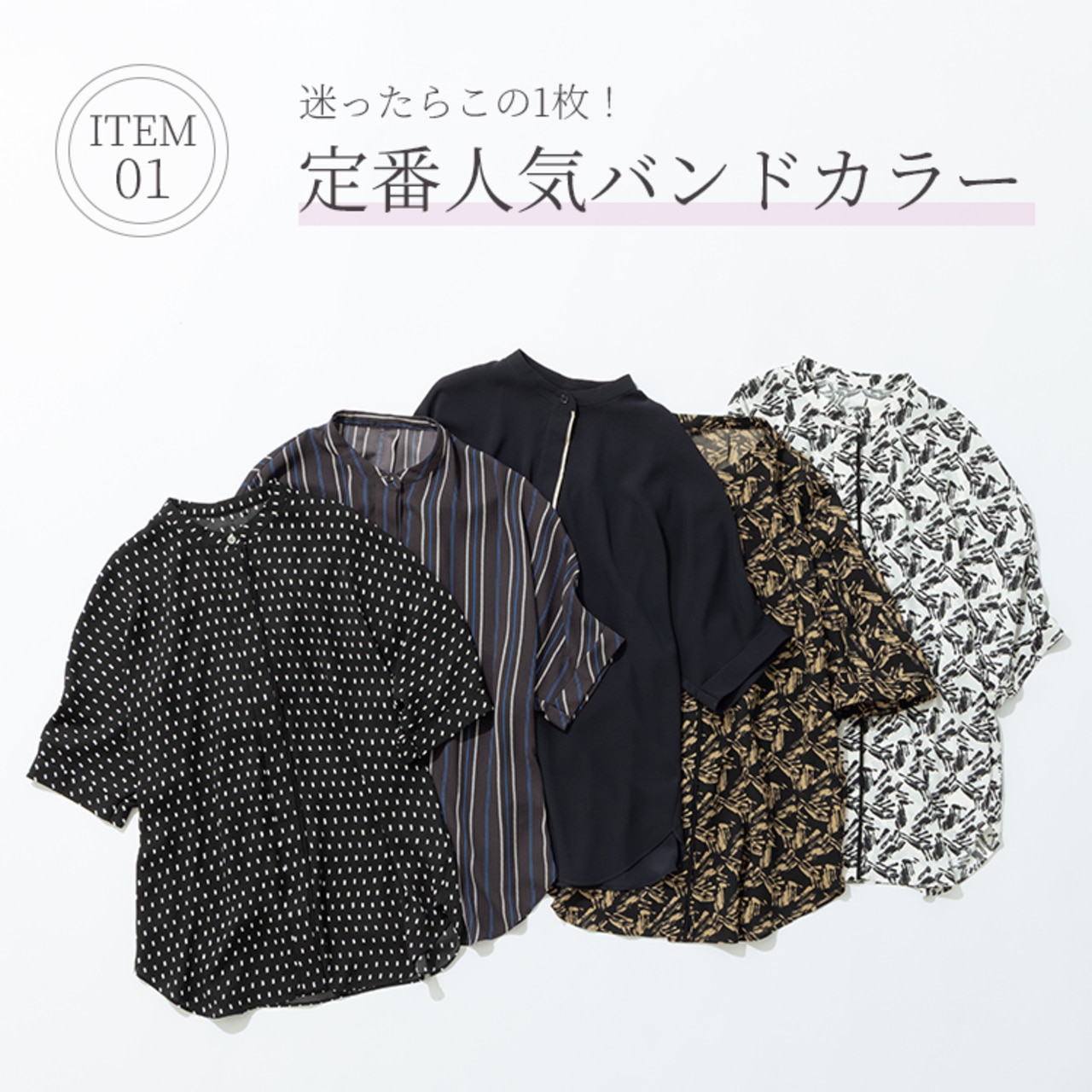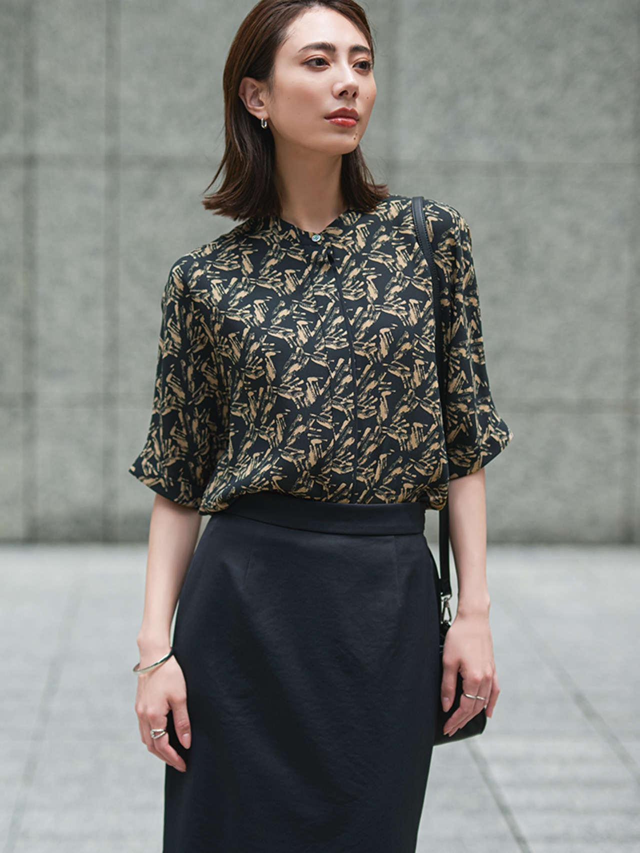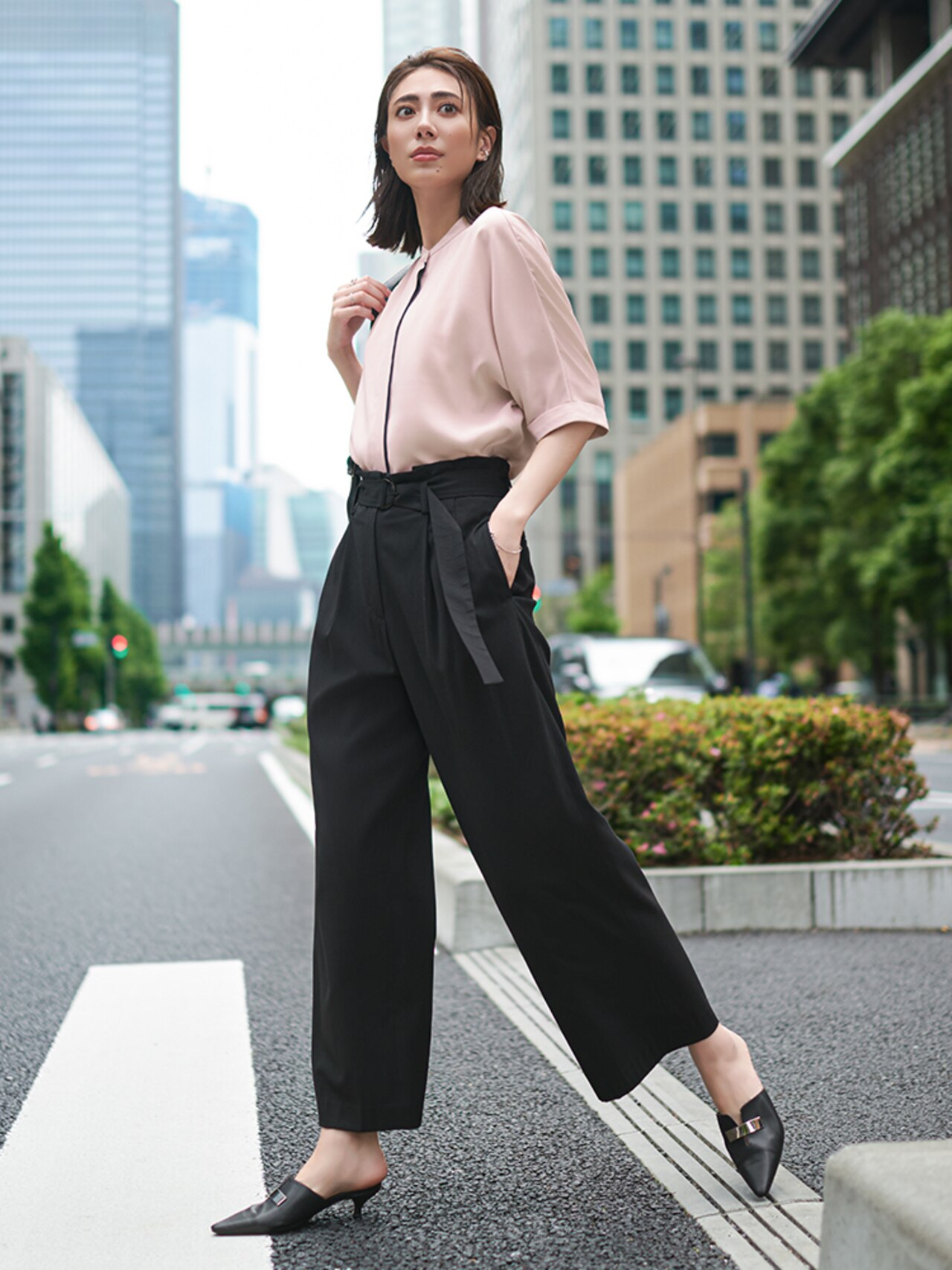 バイカラーの配色デザインを効かせた、甘くなり過ぎない大人のボウタイブラウス。通勤コーデには欠かせない1枚。