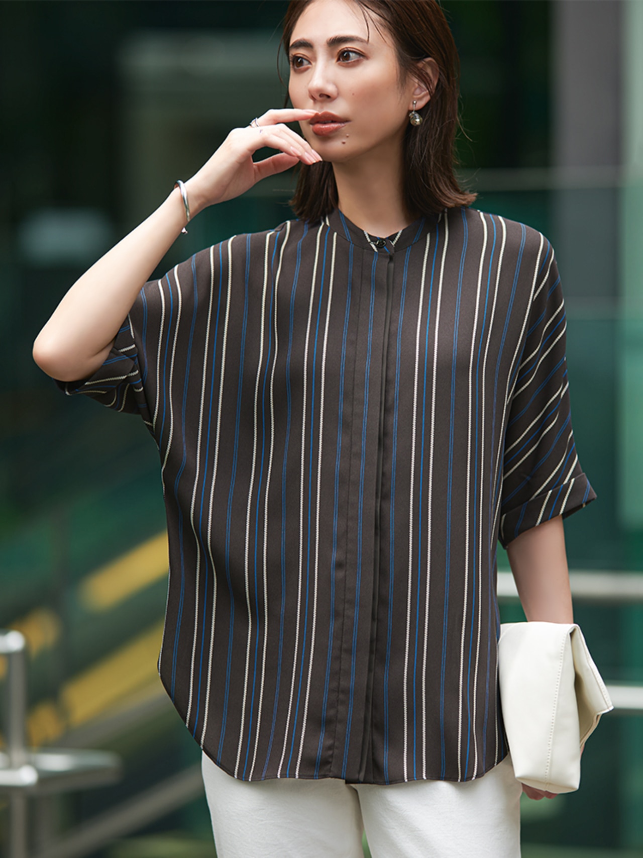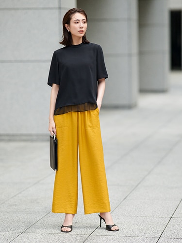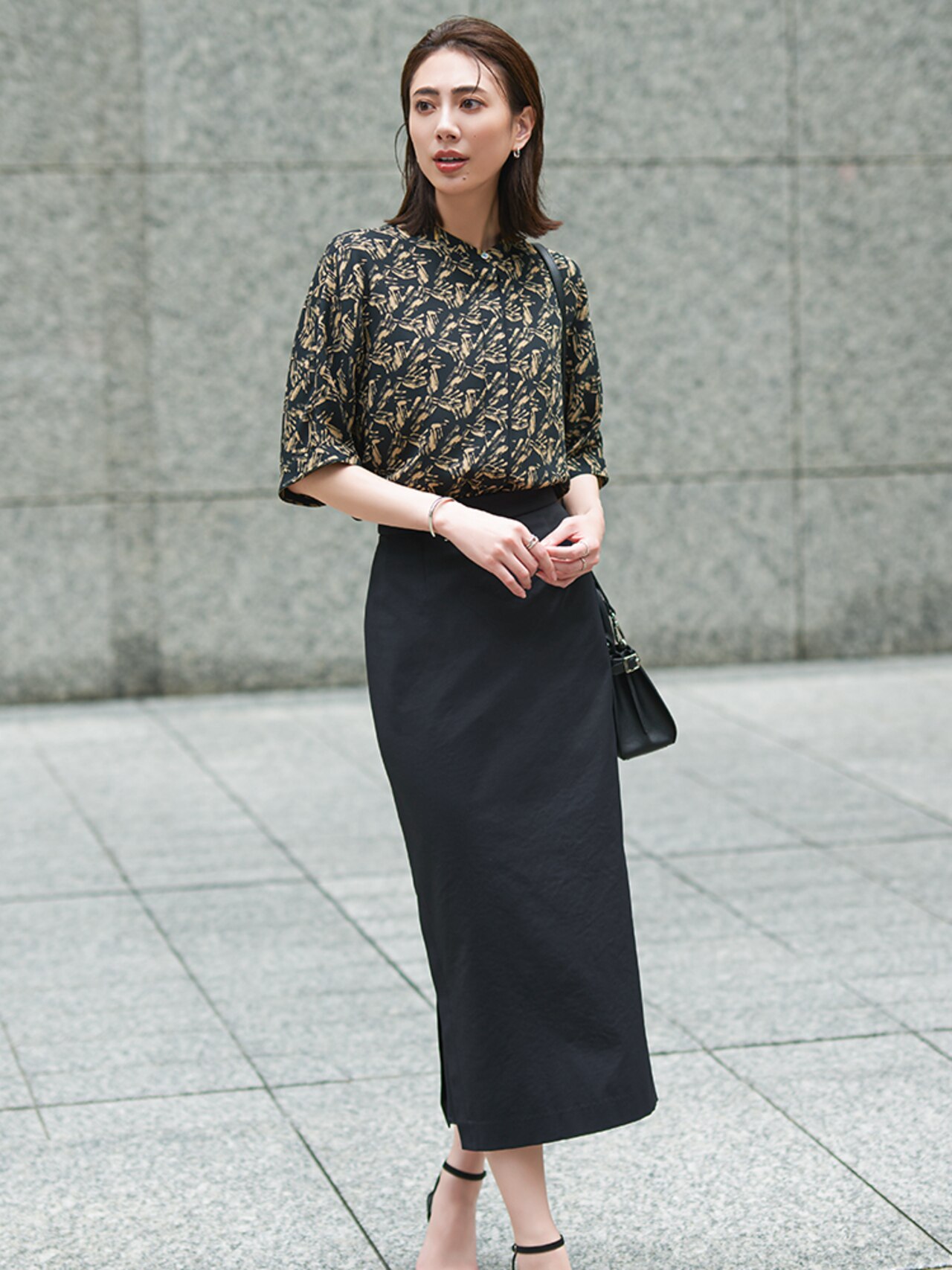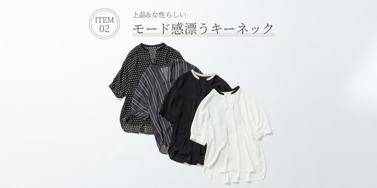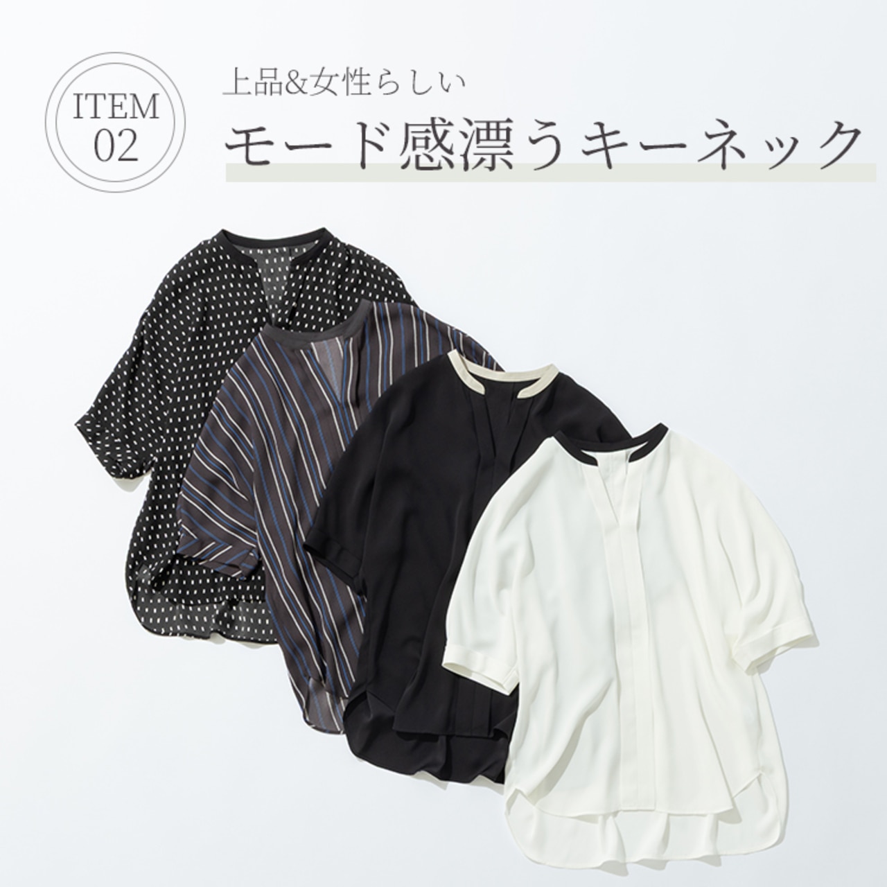 ・上品で女性らしい雰囲気ながらも、モード感もプラスされたキーネック