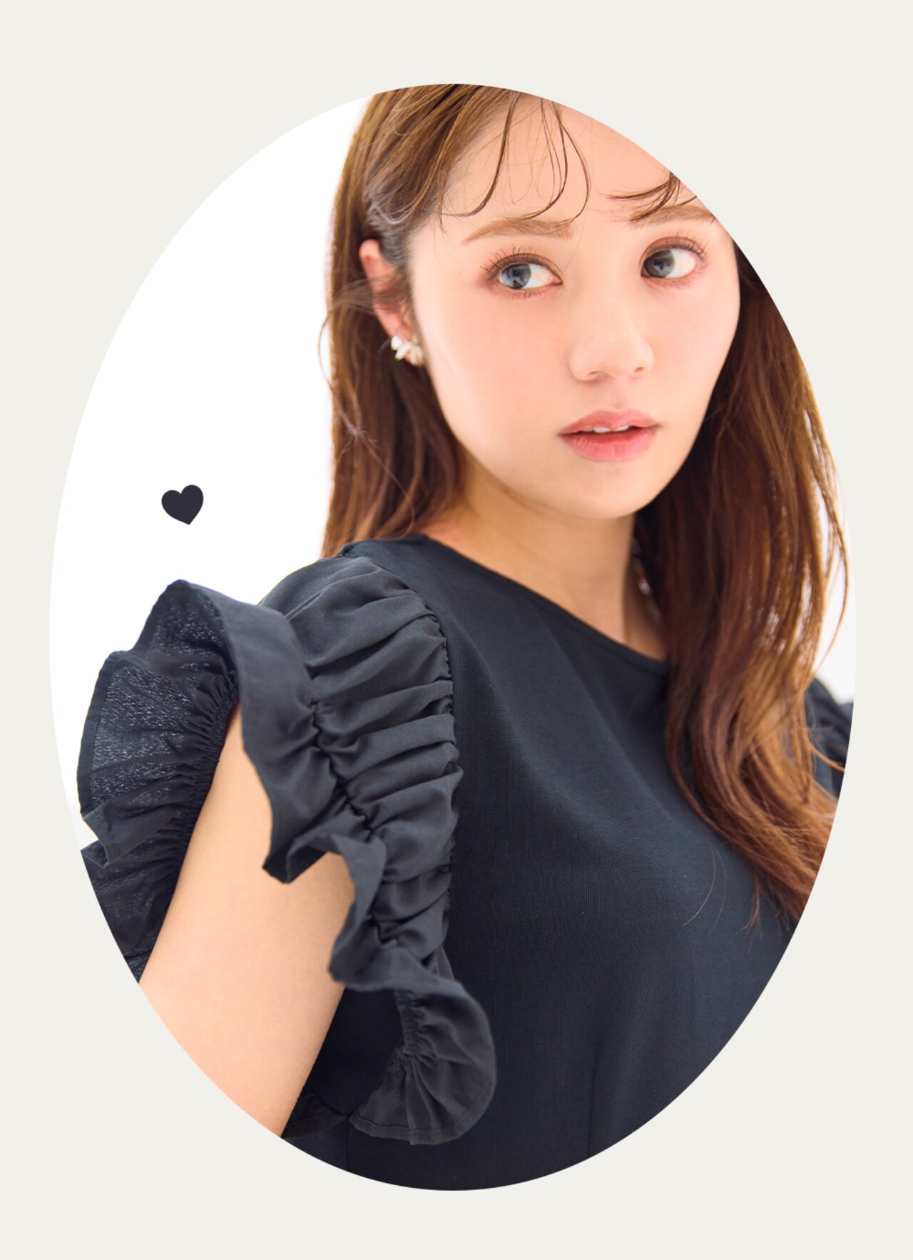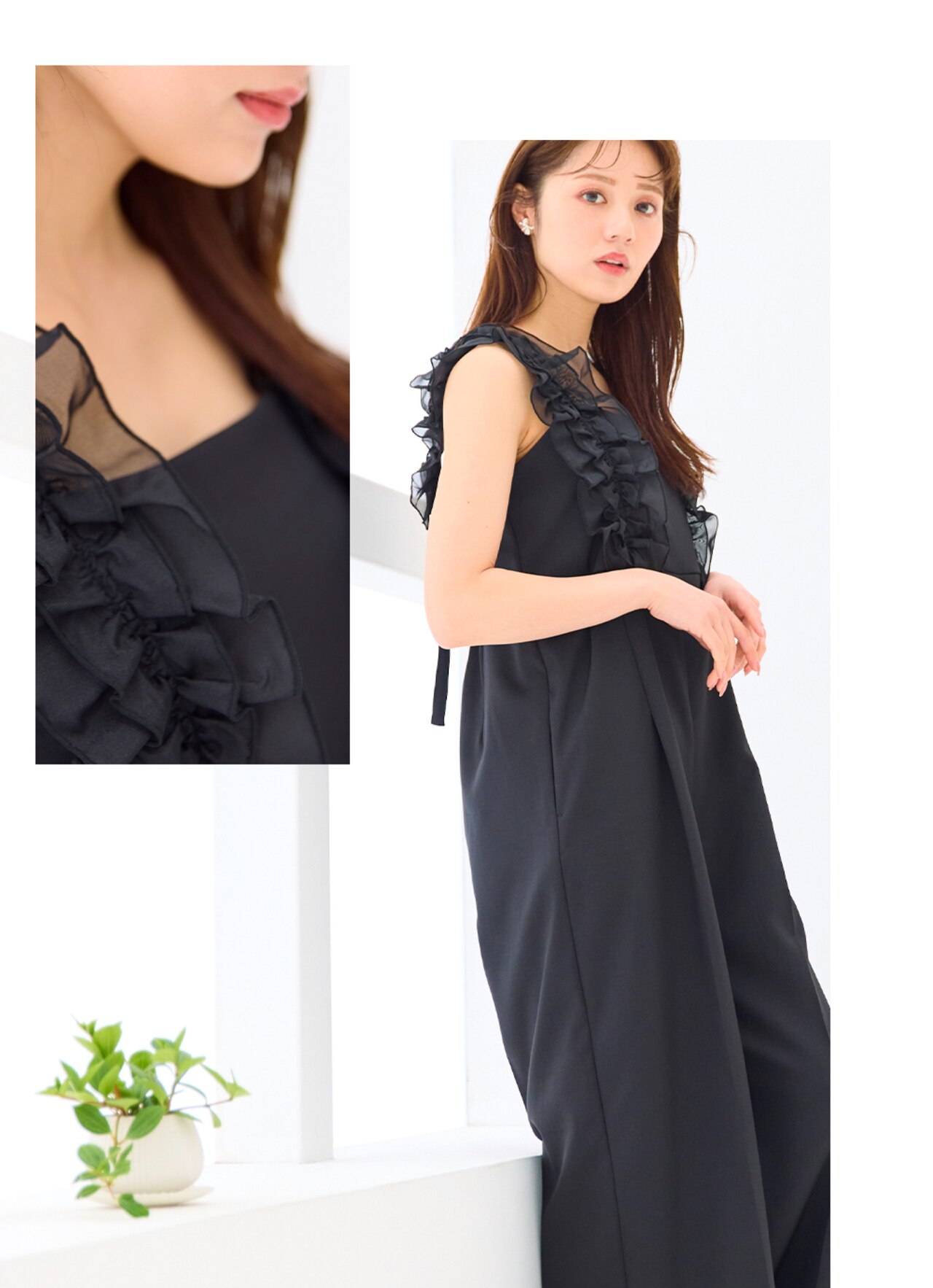 印象的な肩のフリルで、