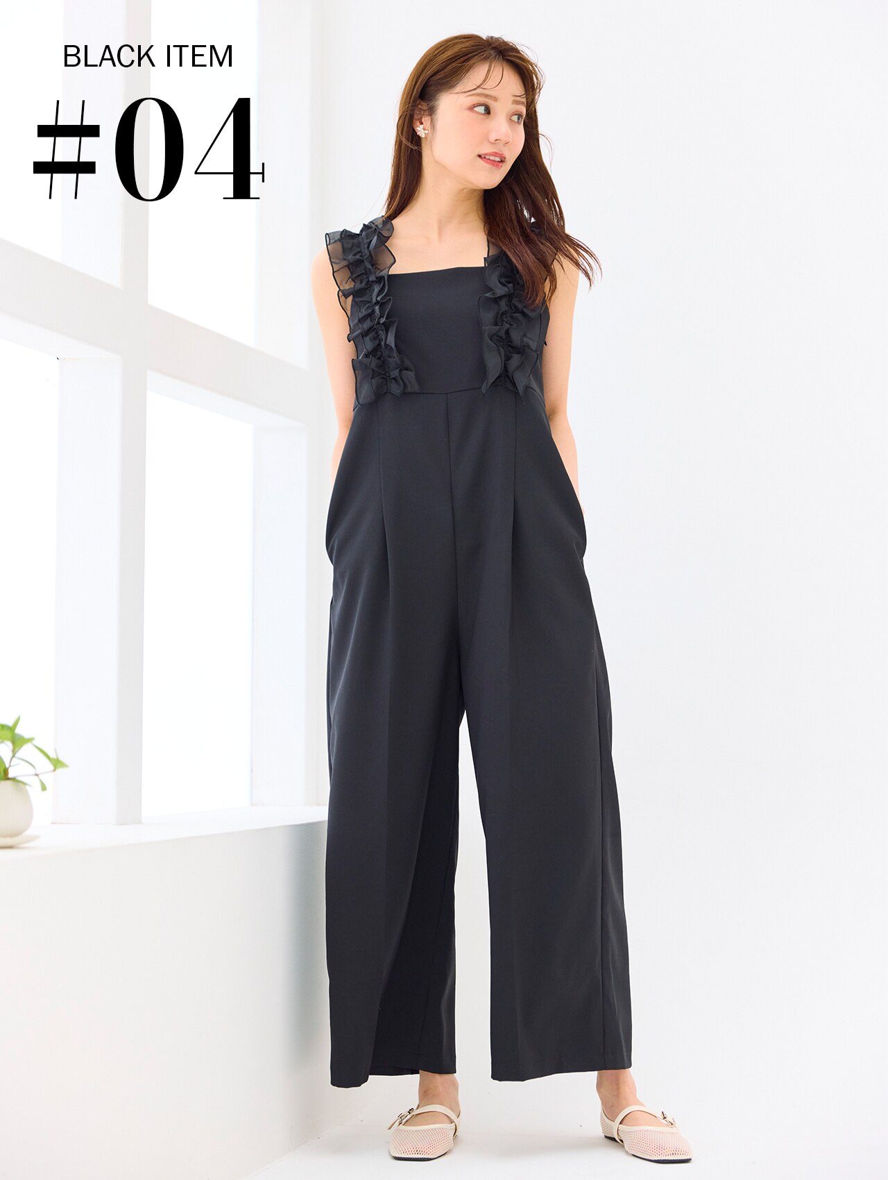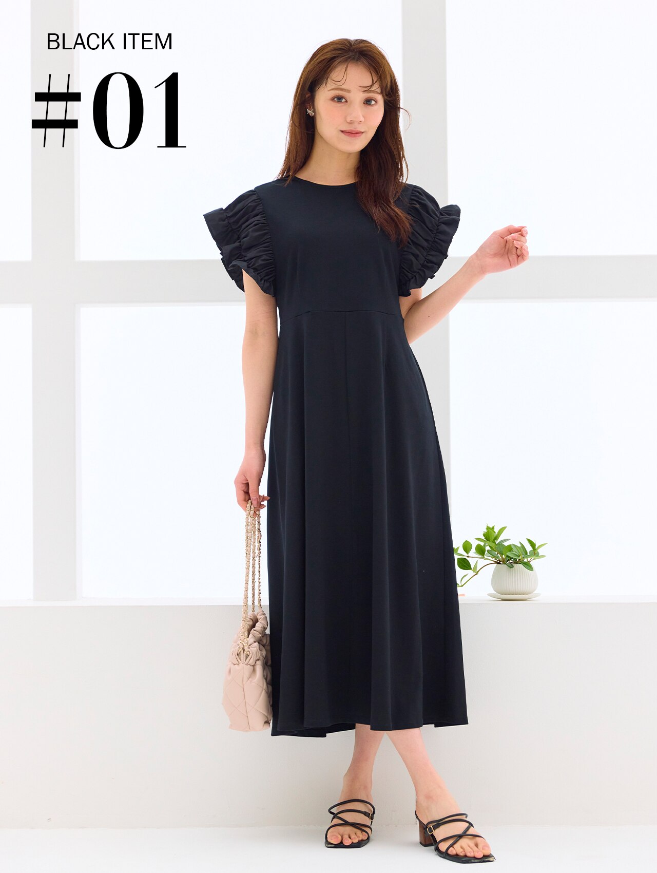 軽やかな袖フリルが映えるデザイン。