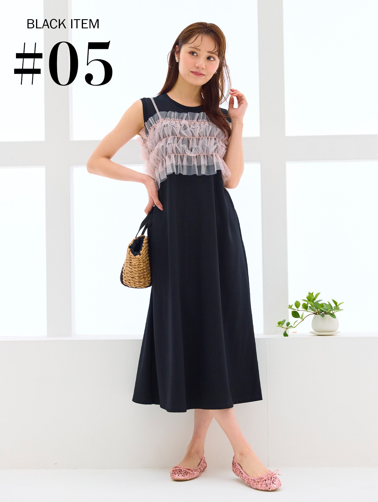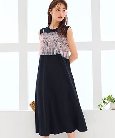 動くたび、やわらかく揺れるチュールビスチェは視線を引き寄せるアクセントに。