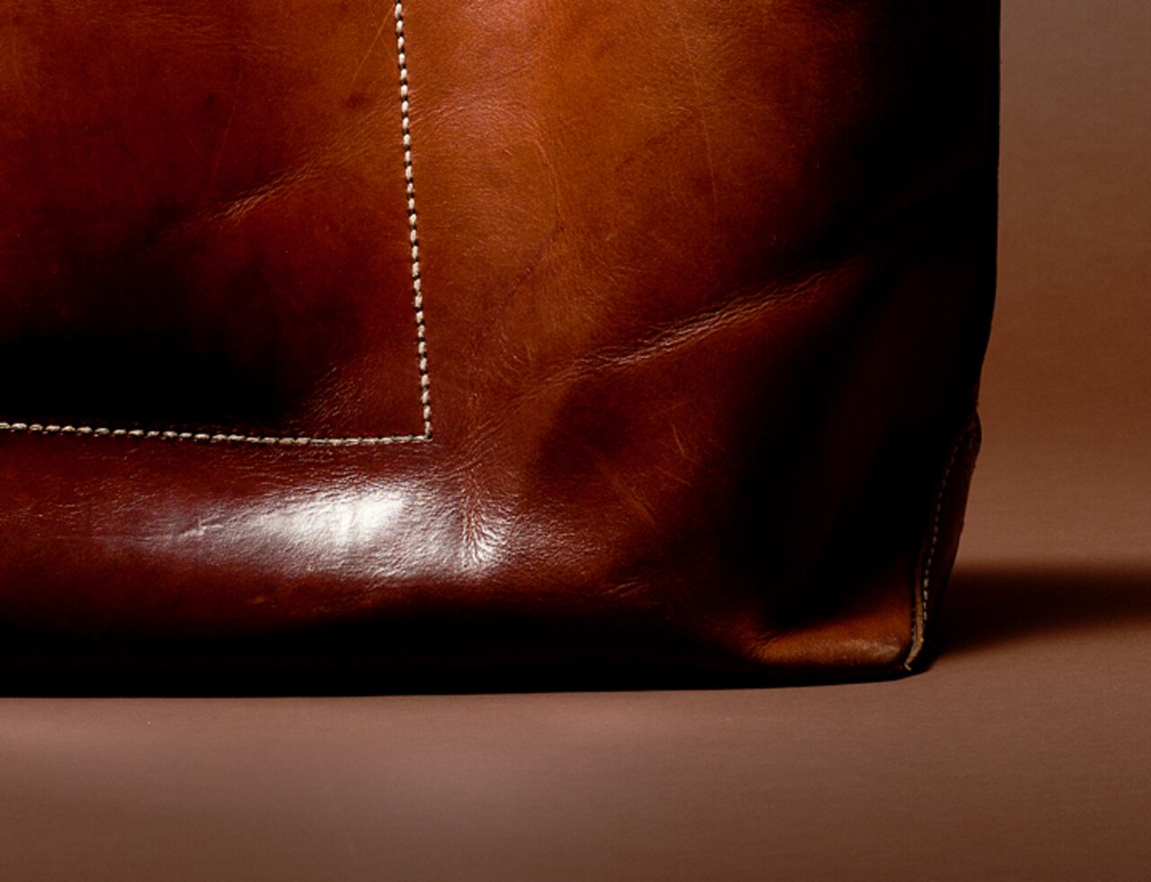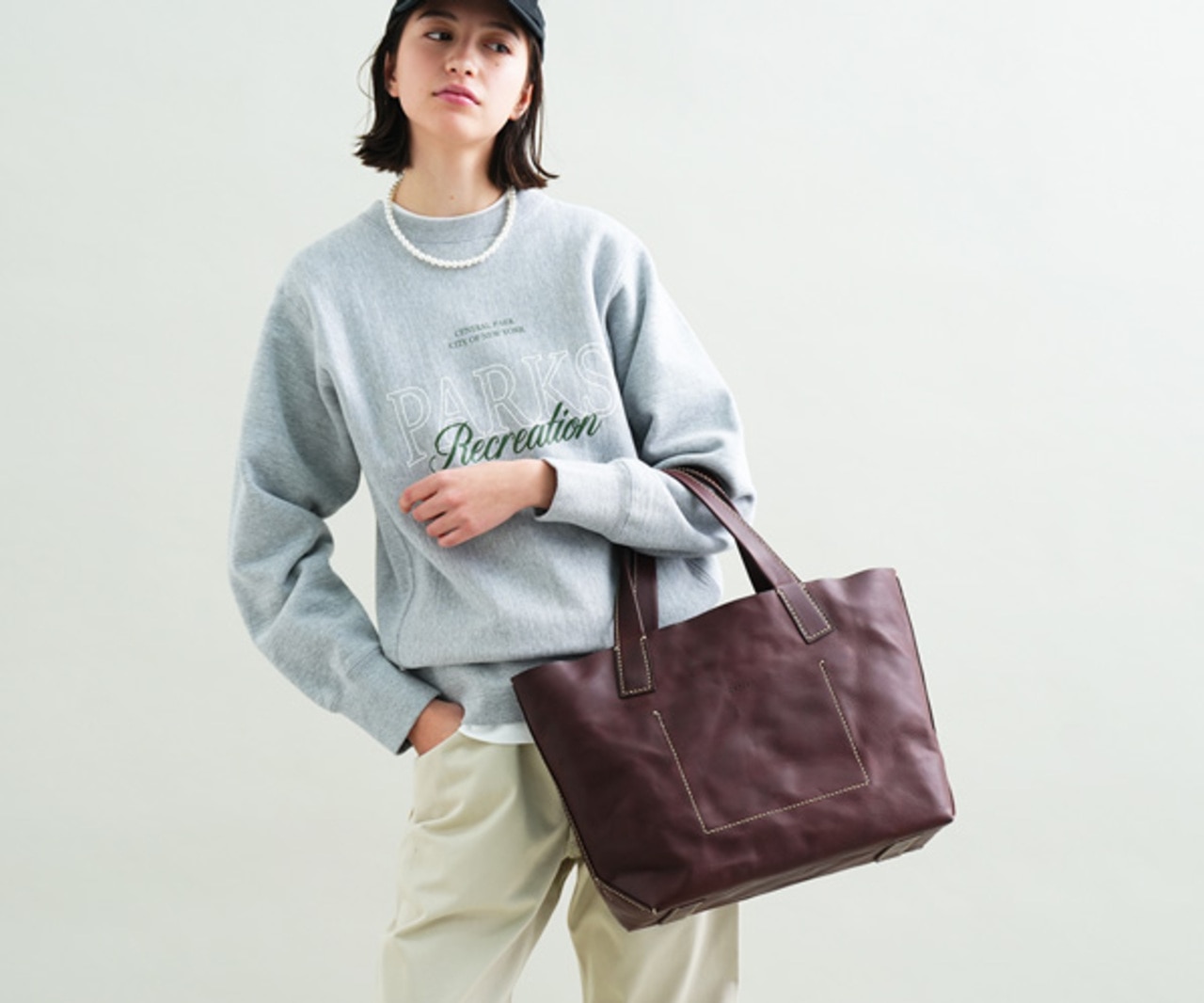 使い込むほどに艶と奥行きが増し、手にしっとりと馴染む革へと育っていきます。触れる場所や光の当たり方など、日々の過ごし方がそのまま革の表情として現れ、やがて持ち主だけの個性が映し出される――それが、このバッグの魅力です。単なる道具ではなく、時を共にしたかけがえのない存在へと変わっていく。その変化を楽しみながら、丁寧に手入れをしつつ、永くご愛用いただければ幸いです。