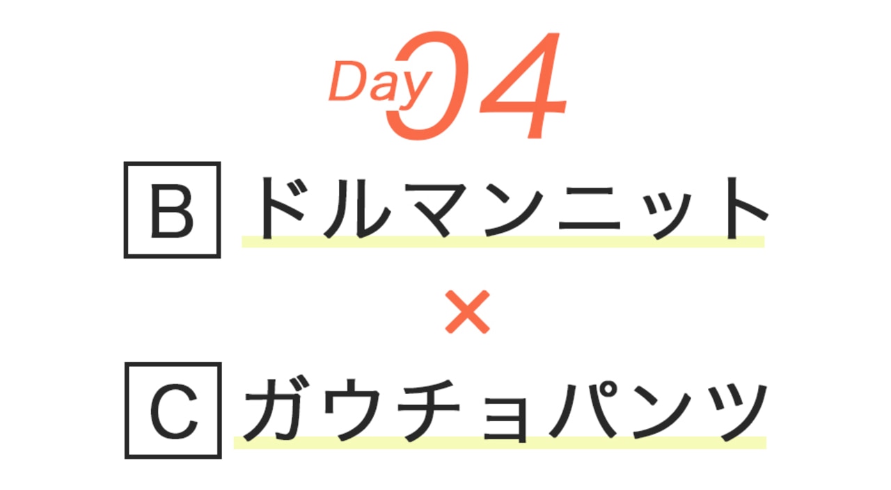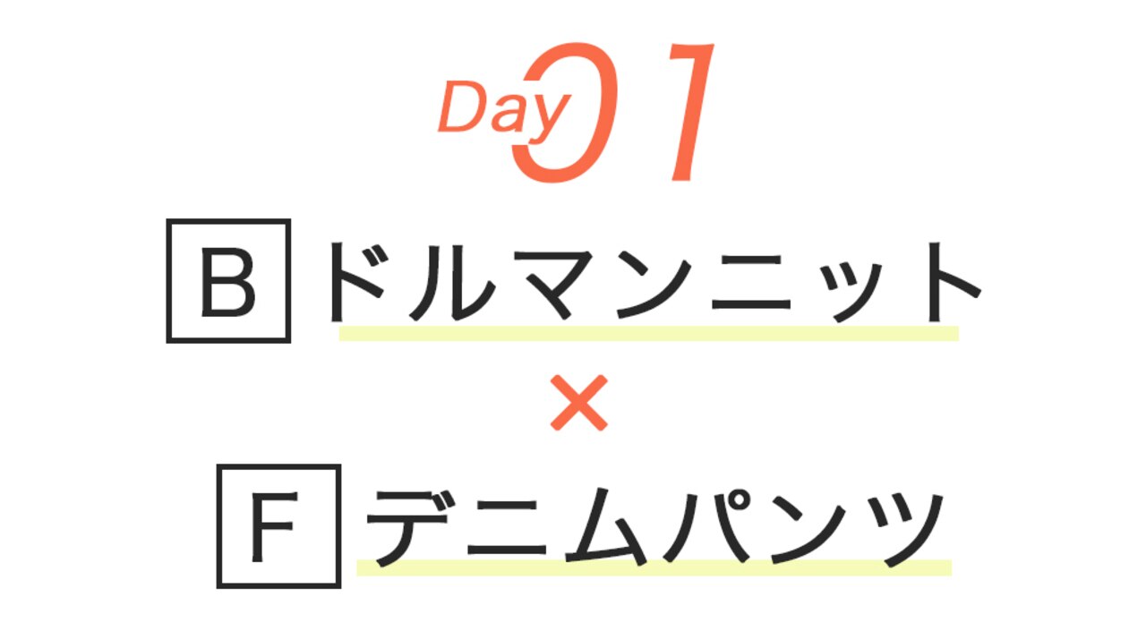 オレンジと黒のクラシカルな配色。肌離れのいいドルマンニット×ガウチョパンツで清涼感と余裕のある着こなしが完成。