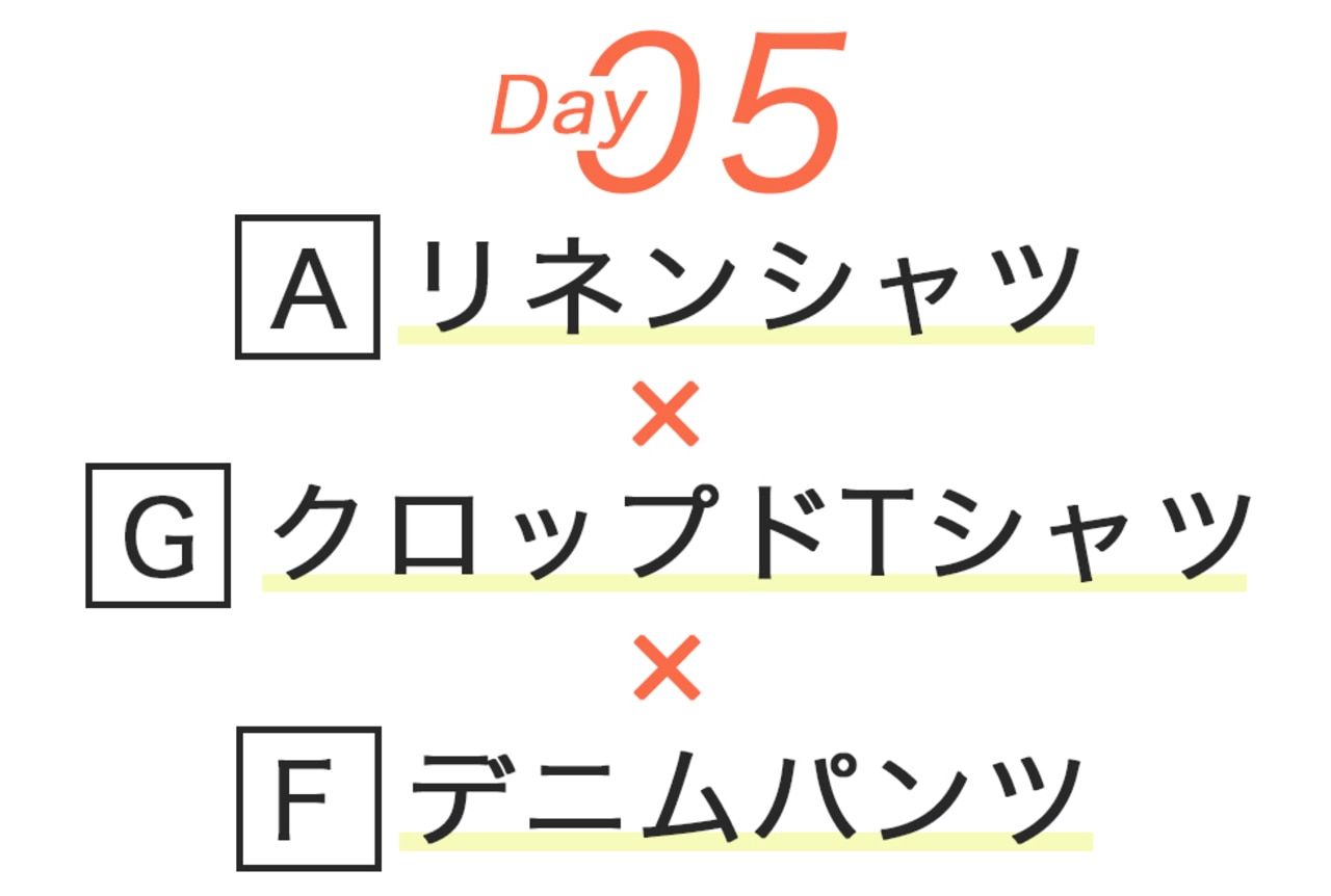 効きのいい派手色オレンジのニットはブルーデニムと好相性。夏への高揚感が一気に高まるコーデで、モダンな女っぽさを演出して。