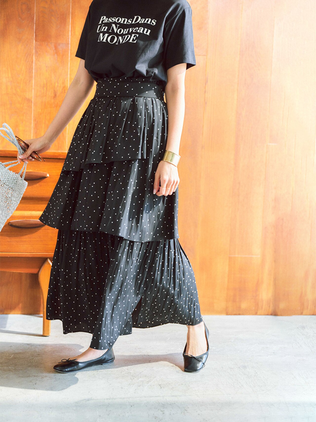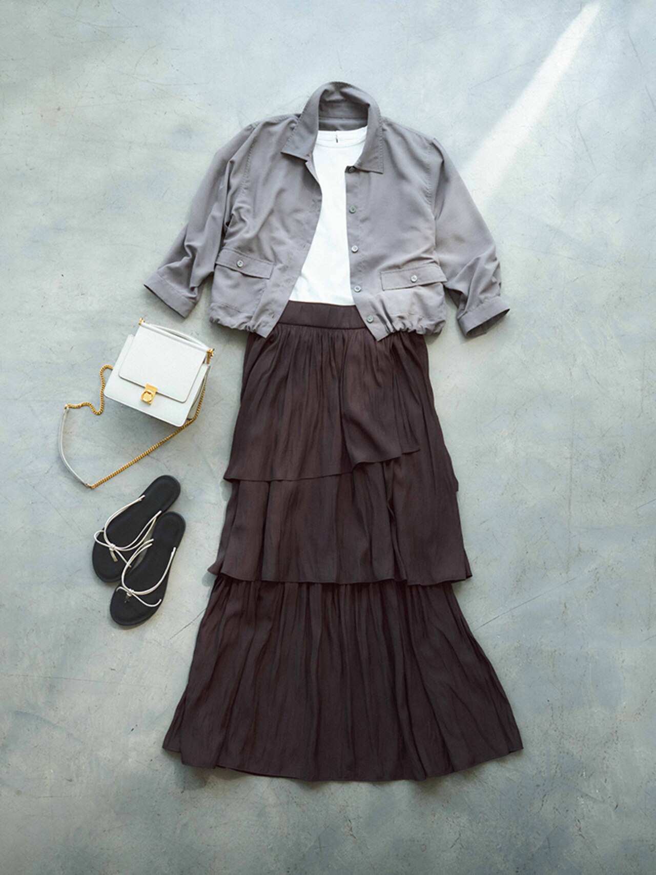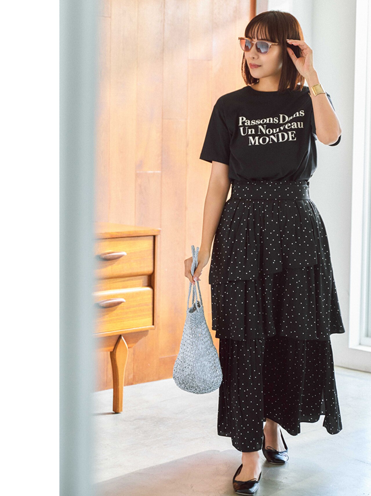 盛夏から秋まで、着回し力抜群のブラウスとスカートをつくりました。ブラウスは前後2way、スカートはレングス2wayでカジュアルからきれいめまで、さまざまなシーンに活躍。セパレートで着回せるだけでなく上下セットアップで着るとワンピースのように見えて、さらに着こなしの幅が広がります。シワになりにくく、ホームクリーニングが可能。かさばらないから旅行にもおすすめです。by MIYU IRIE