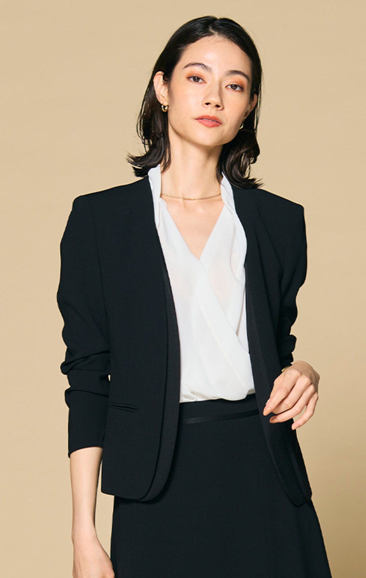 ダブルカラーとテーラード、Vネックとダブルと選べる豊富なデザインで、女性らしく優しい雰囲気に包まれて。