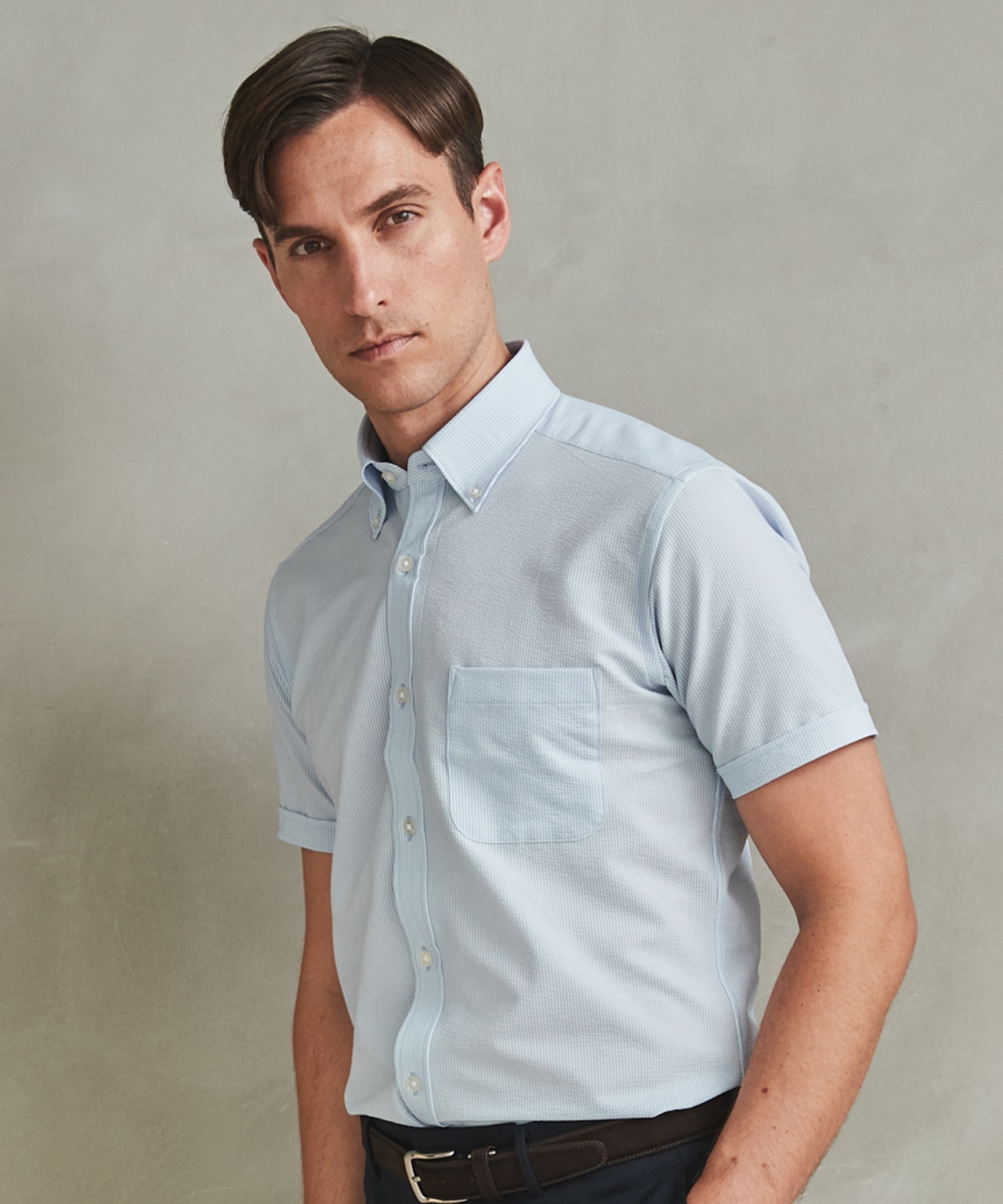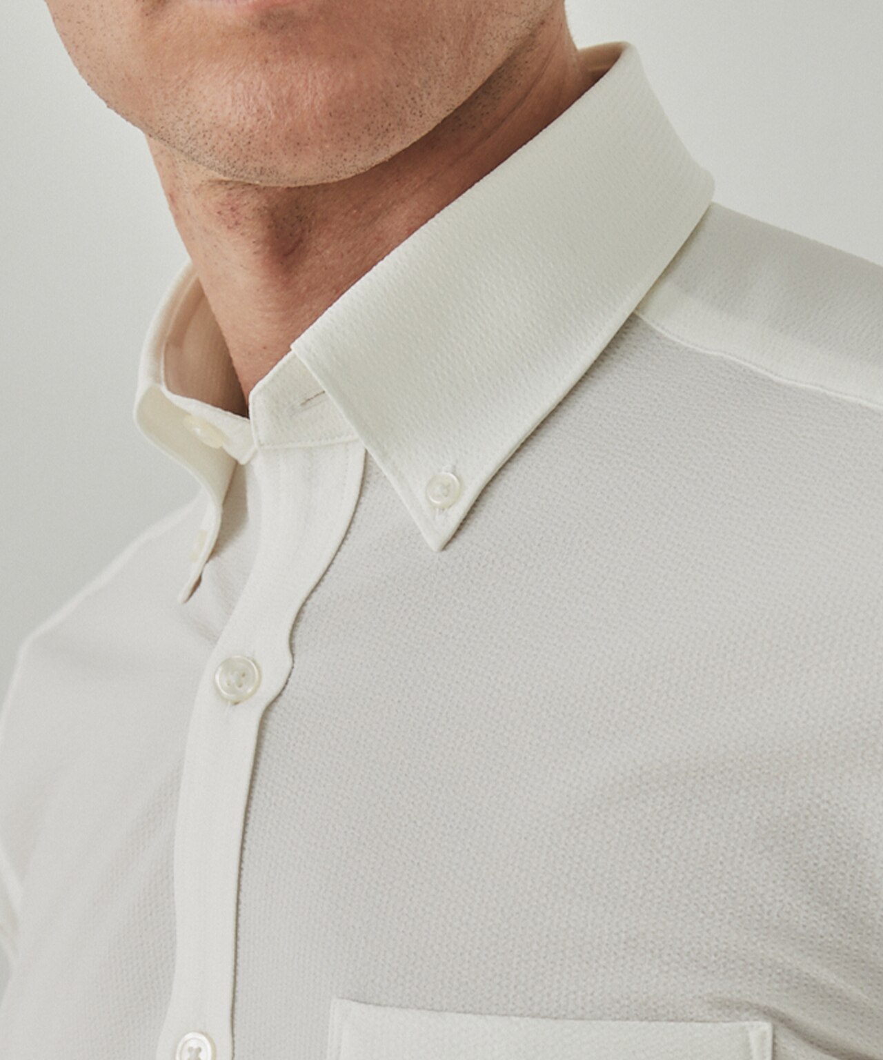 COOL MAXの吸水ドライ機能を最大限に生かしつつ、COOL BIZという日本ならではの“崩しすぎてはいけない絶妙な塩梅”のビジネススタイルを細部デザインにまで落とし込んでいるのが、五大陸のCOOL MAX TOPSの特徴。